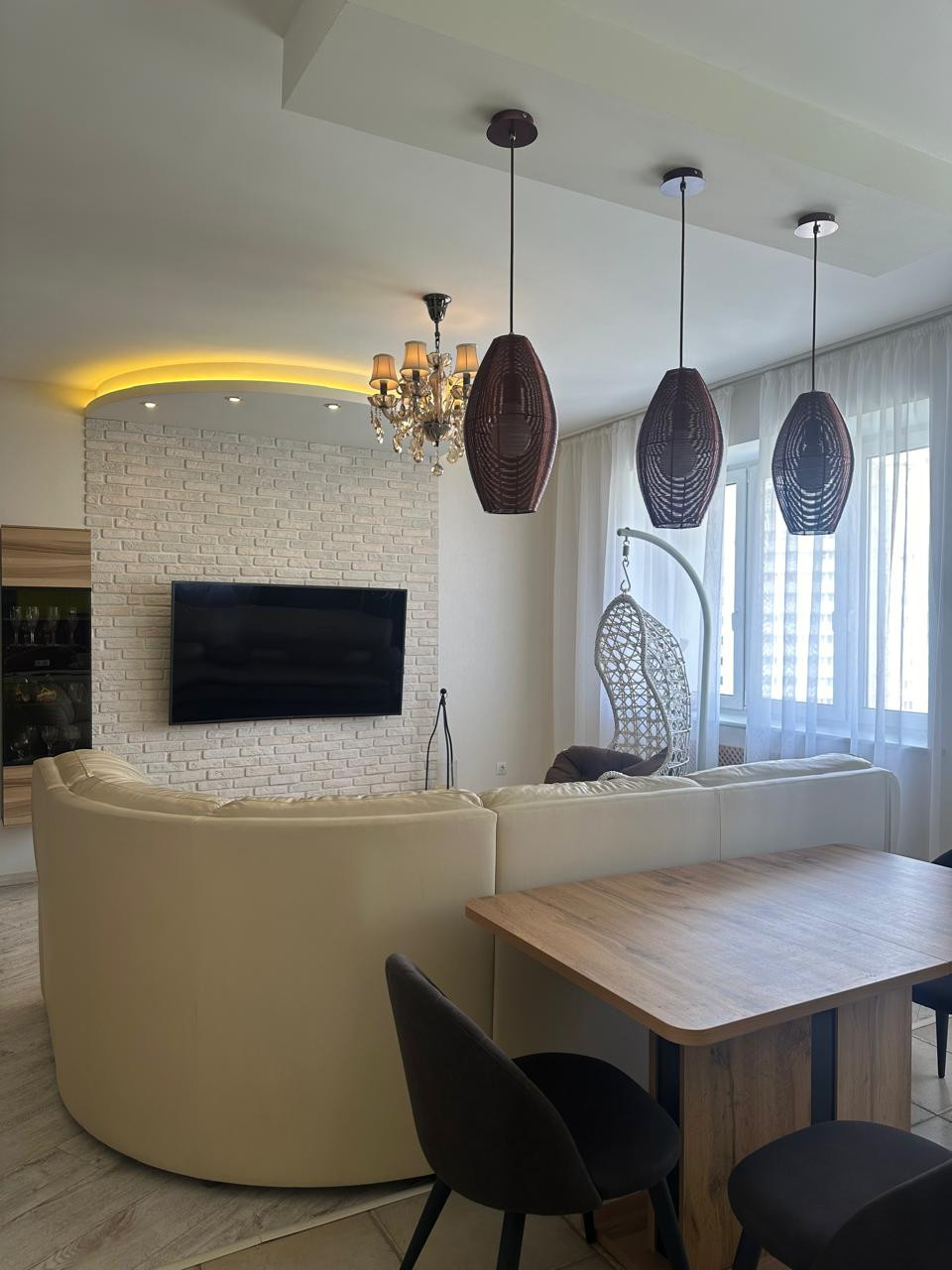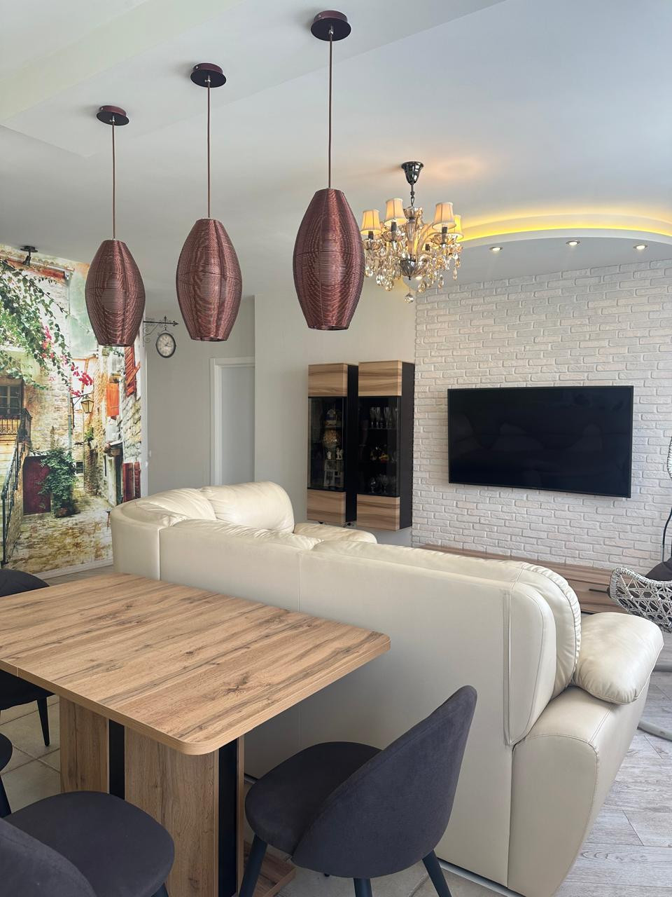 Кухня и прилегающая комната  объединены для комфортного отдыха. В квартире 2 полноценных санузла (с ванной и душевой кабиной).