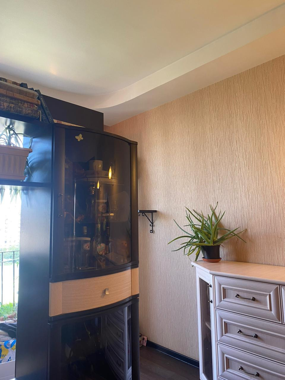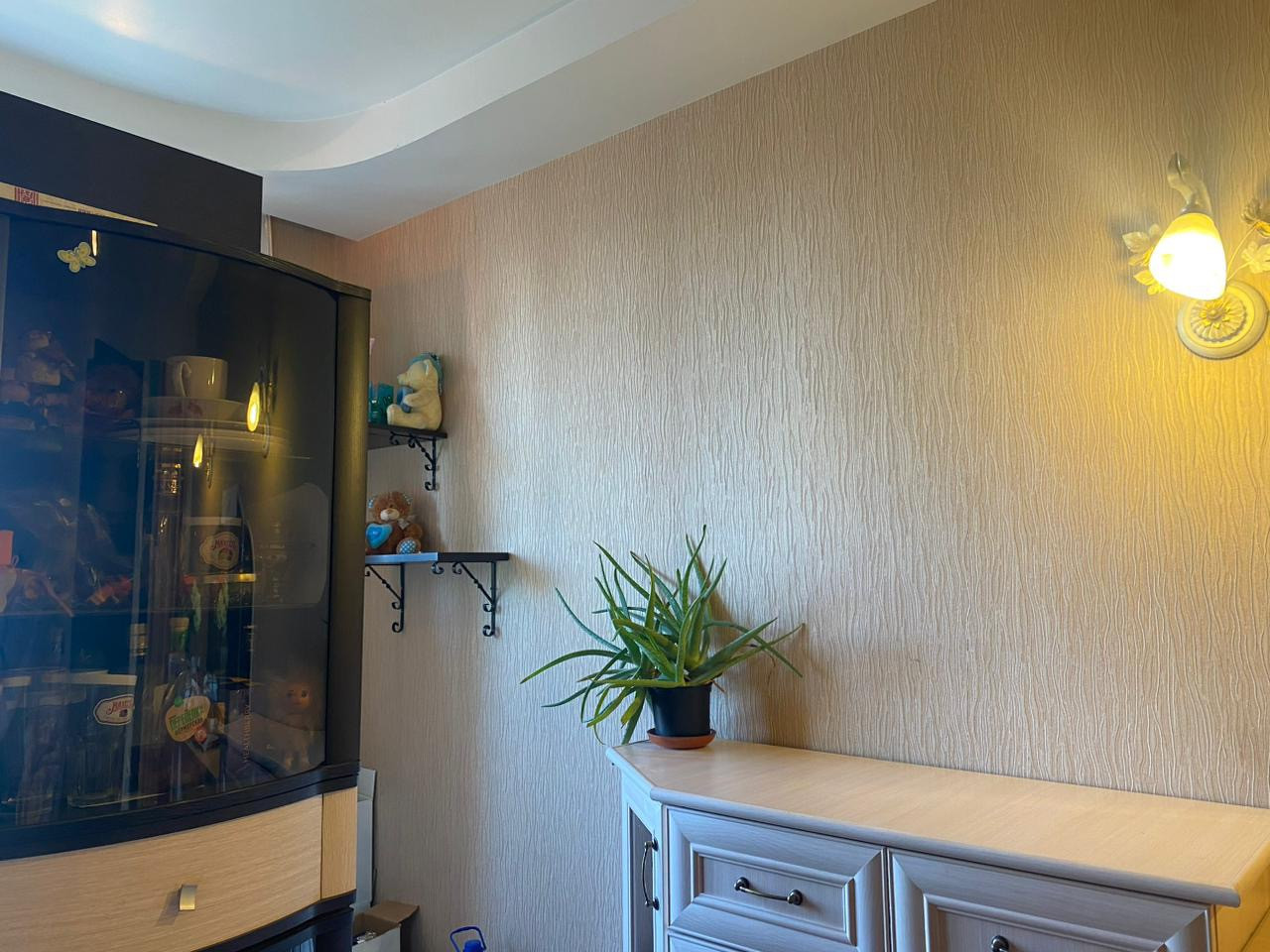 Потолки с ремонтом, комната 18,2 м с шикарным ремонтом, гардеробной и балконом. Вторая комната со шкафом на заказ ( требует ремонта) в третьей ремонт частично.