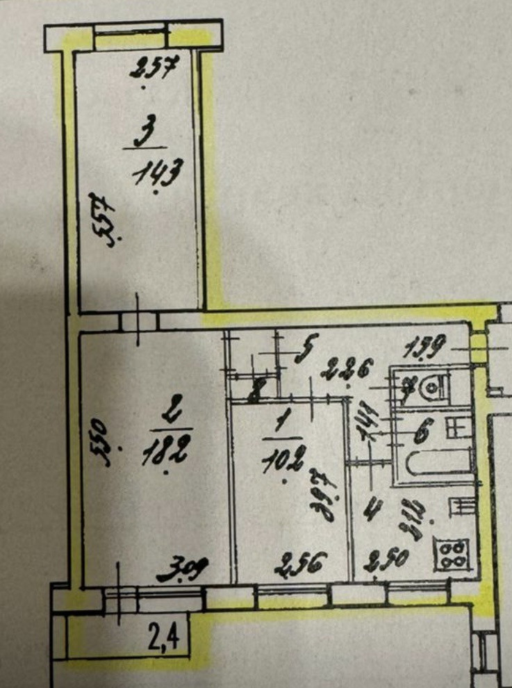 Двусторонняя квартира на 8 этаже, общая площадь 58,2 м, изолированные комнаты площадью 18,2 м, 14,3 м и 10,2 м, кухня 5,7 м. Можно сделать удобную евро трёхкомнатную квартиру с кухней-гостиной 15,9 м.