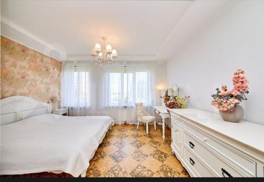 Спальня 16,9 квм  с гардеробной комнатой и большая детская с  игровой зоной 35,9 квм расположены в разных концах квартиры. Из детской и библиотеки выходы на  утепленную лоджию 10,2 квм. На лоджии оборудован кабинет. В квартире два санузла и сауна. Тёплый пол сделан в санузлах, в сауне, на кухне и частично в коридоре у двери. Для поддержания комфортного климата кондиционеры в каждой комнате.  Имеется стабилизатор напряжения.