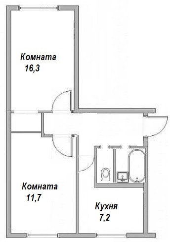 Квартира двусторонняя, общей площадью 45,9 м2 , комнаты изолированные, 11,7 кв.м