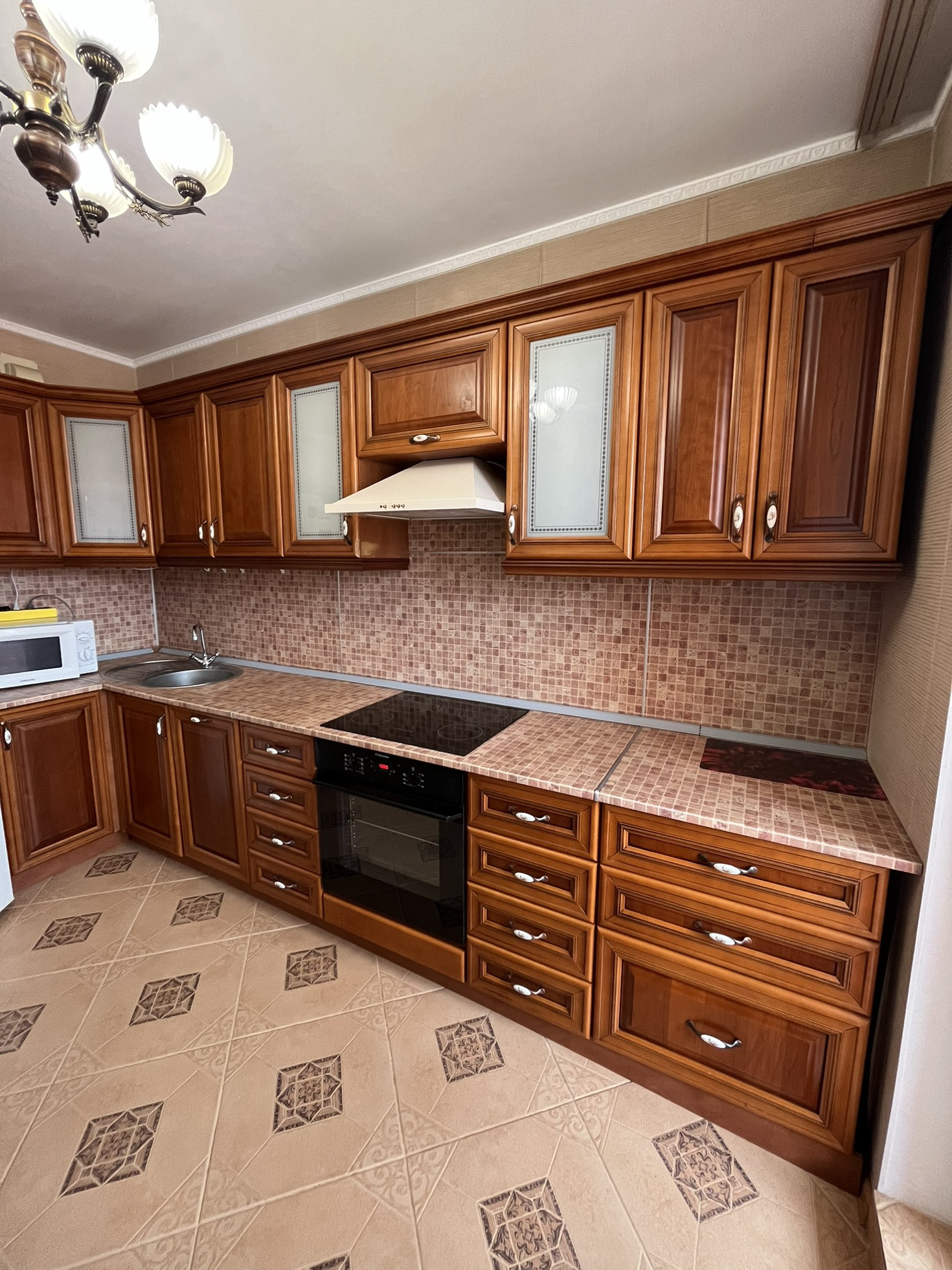 В квартире сделан хороший ремонт, вся мебель и техника остается покупателю . Встроенная кухня с посудомоечной машиной, варочная панель, духовой шкаф, вытяжка, холодильник, СВЧ,стиральная машина , диван , шкафы . Заезжай и живи, все условия для этого есть.