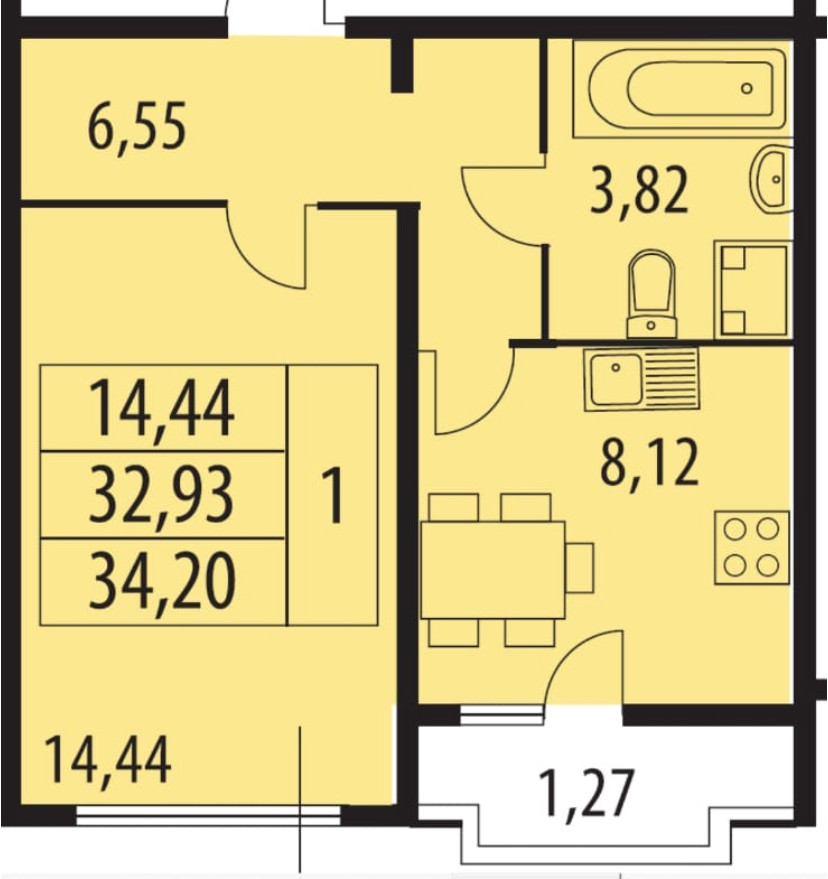 Общая площадь 34.2 м2