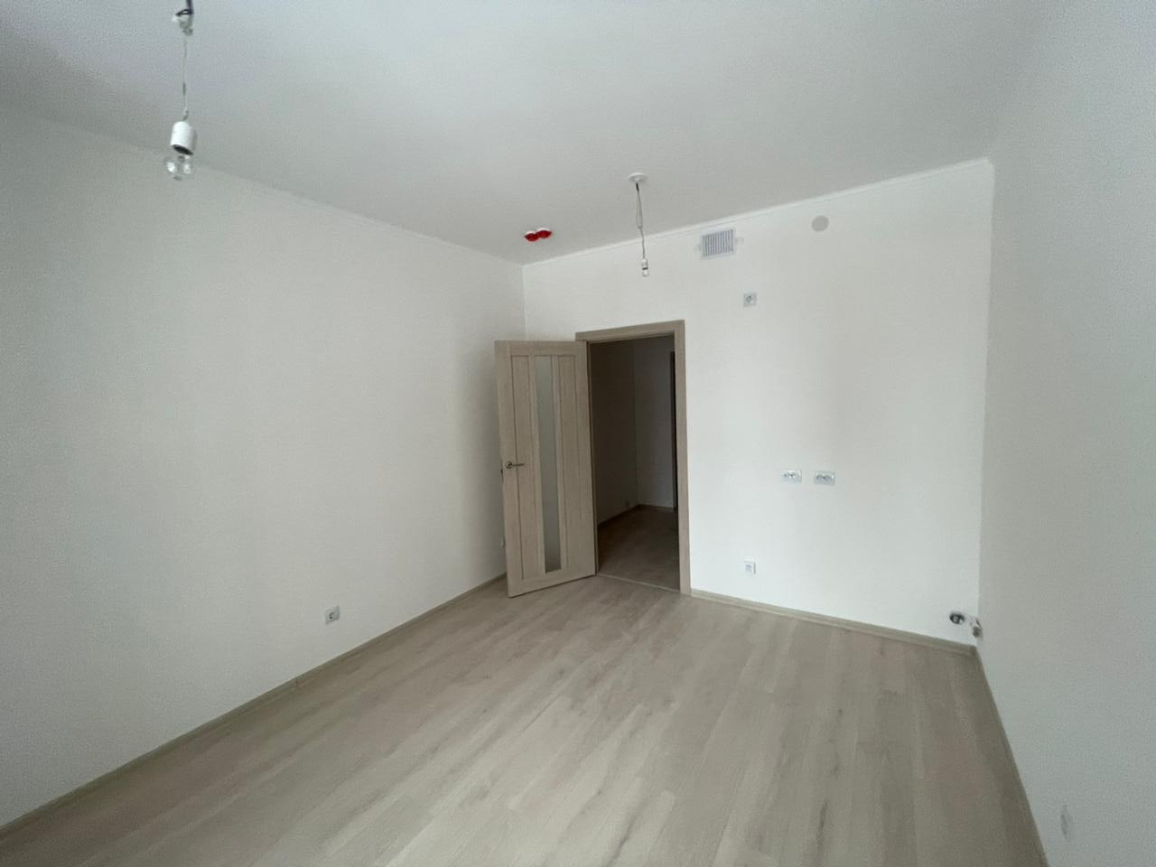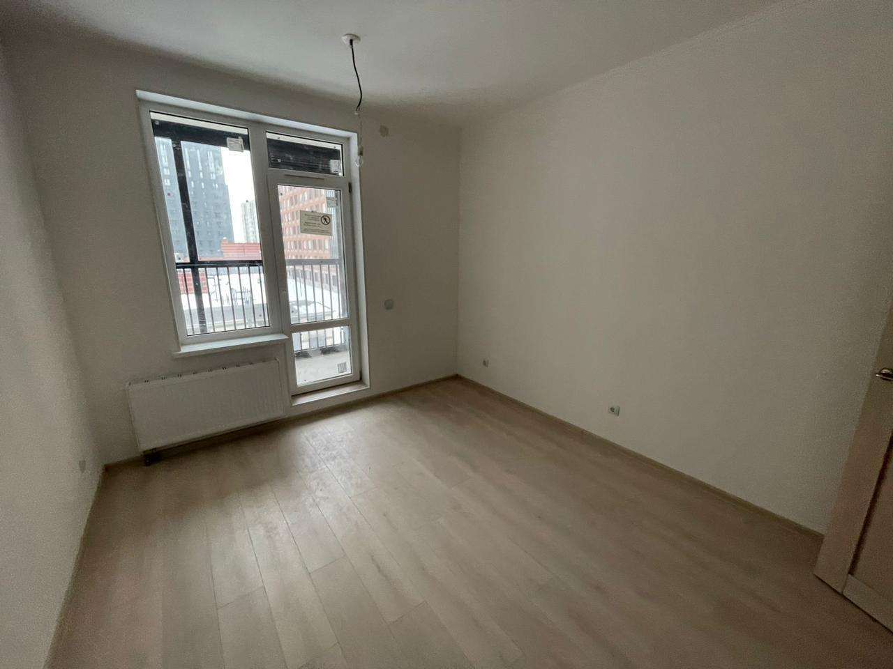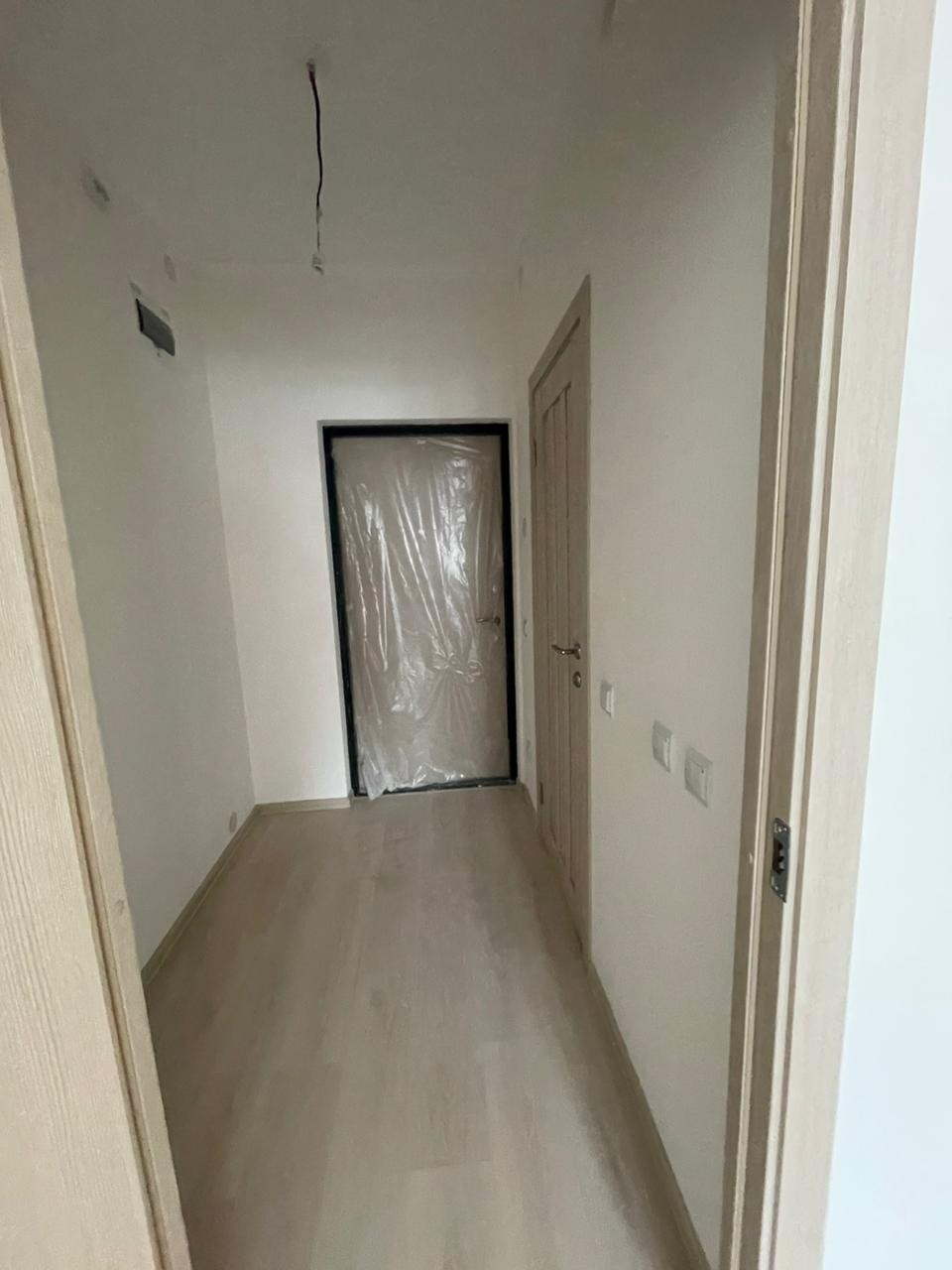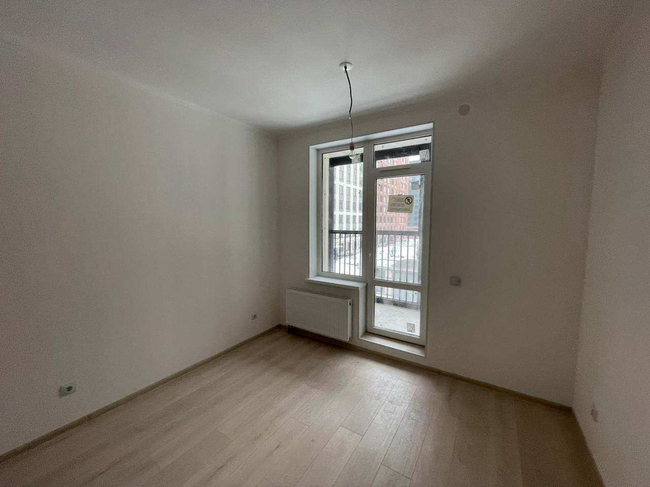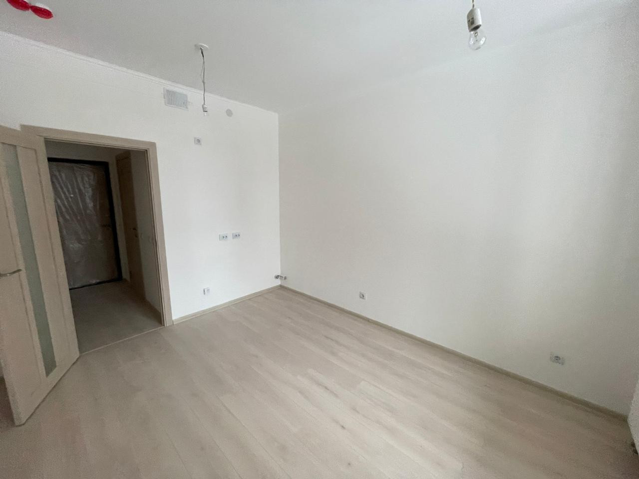 В квартире выполнена полная чистовая отделка в светлых тонах: на стенах в комнате и прихожей - обои под покраску, полы - ламинат, установлены все розетки и выключатели.