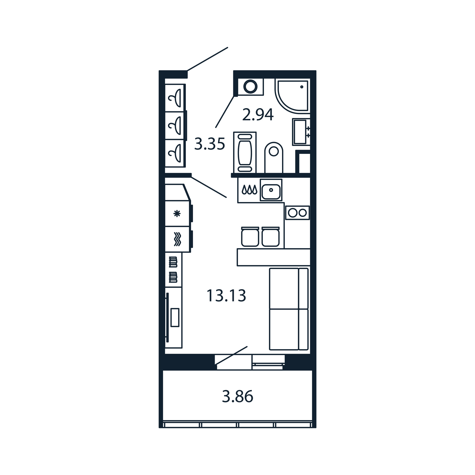 Эргономичная квартира-студия с просторной застекленной лоджией.
