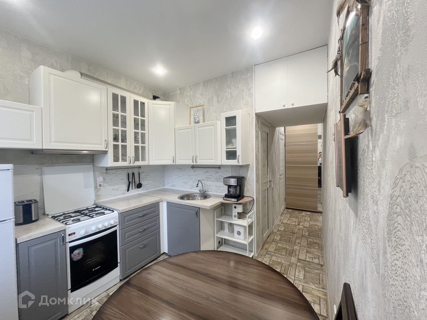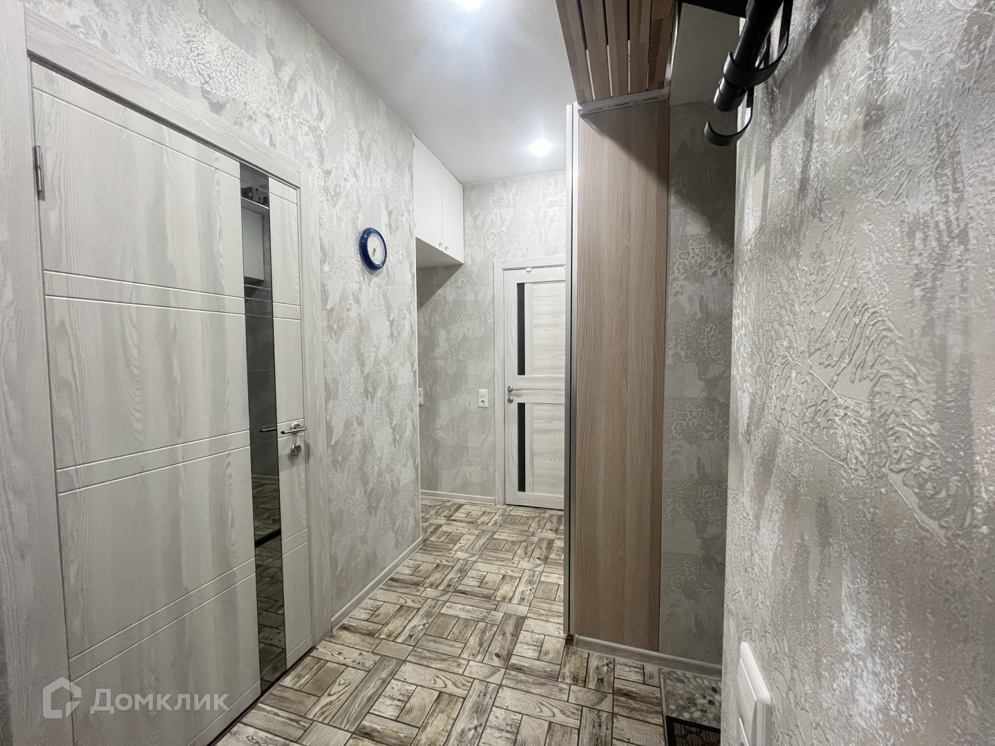 В ванной, туалете и кухне плитка, в комнатах уложен ламинат ламинат.