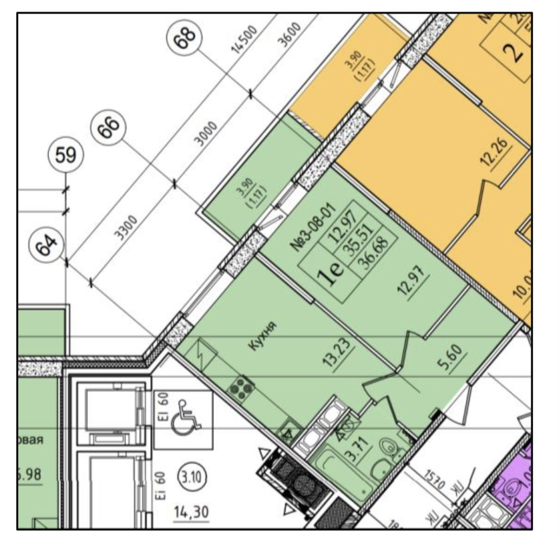 Общая площадь 36.68 м2