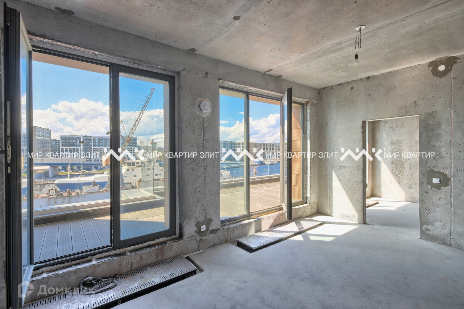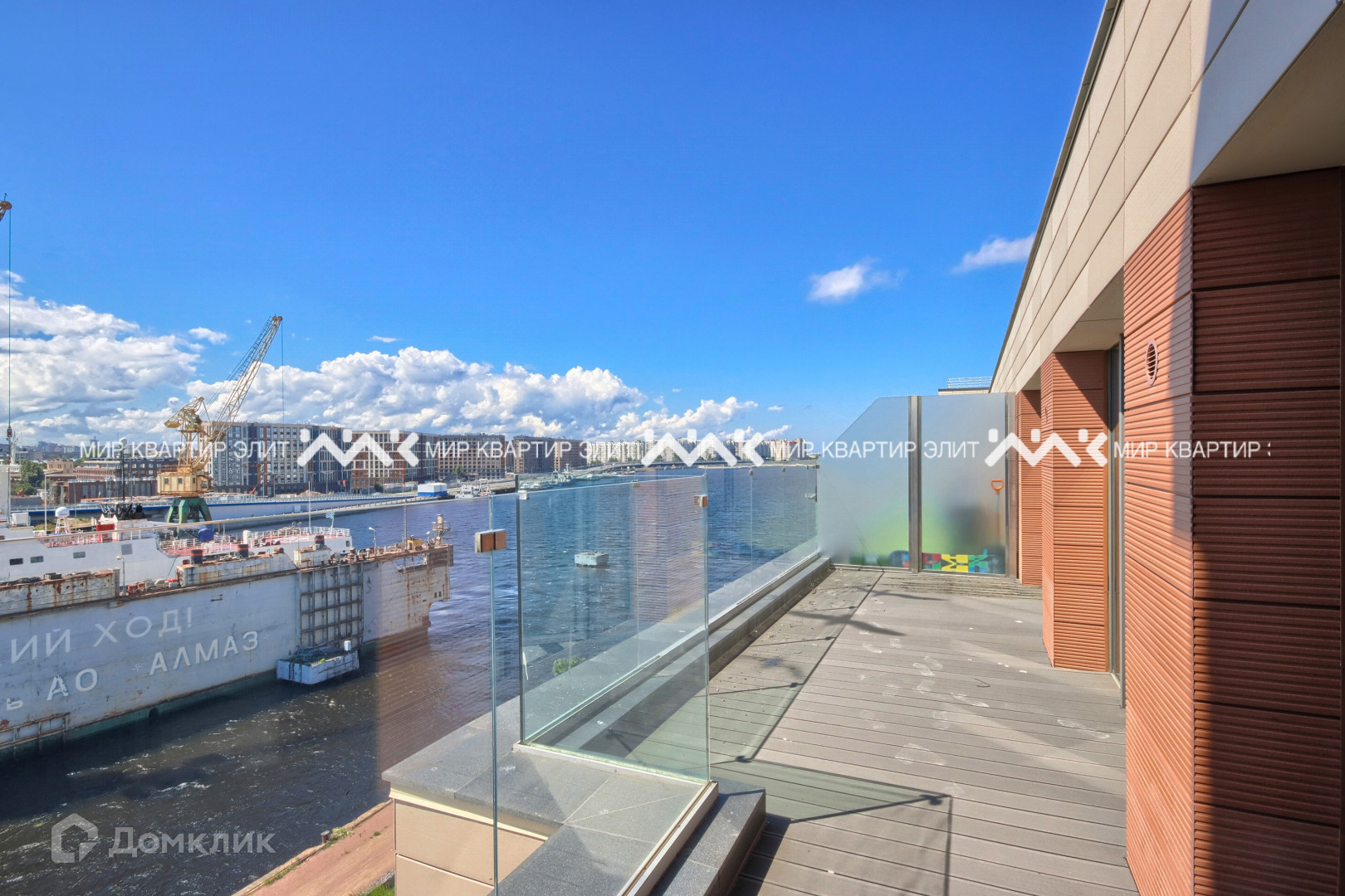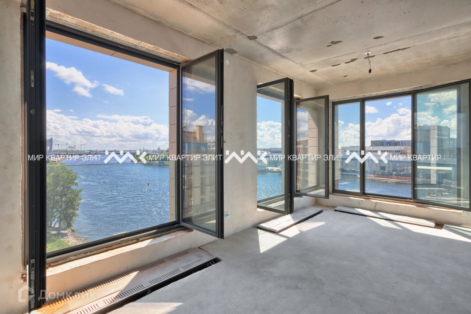 Квартира располагается на 7 этаже и имеет большую открытую террасу с прямым видом на воду. Благодаря тому, что квартира угловая, открывается потрясающий обзор Невы от моста Бетанкура и вплоть до выхода в Финский Залив. Огромные панорамные "окна в пол" наполняют квартиру светом и позволяют насладится акваторией Невы в каждой комнате. Таких окон нет больше ни в одном комплексе на Петровском!