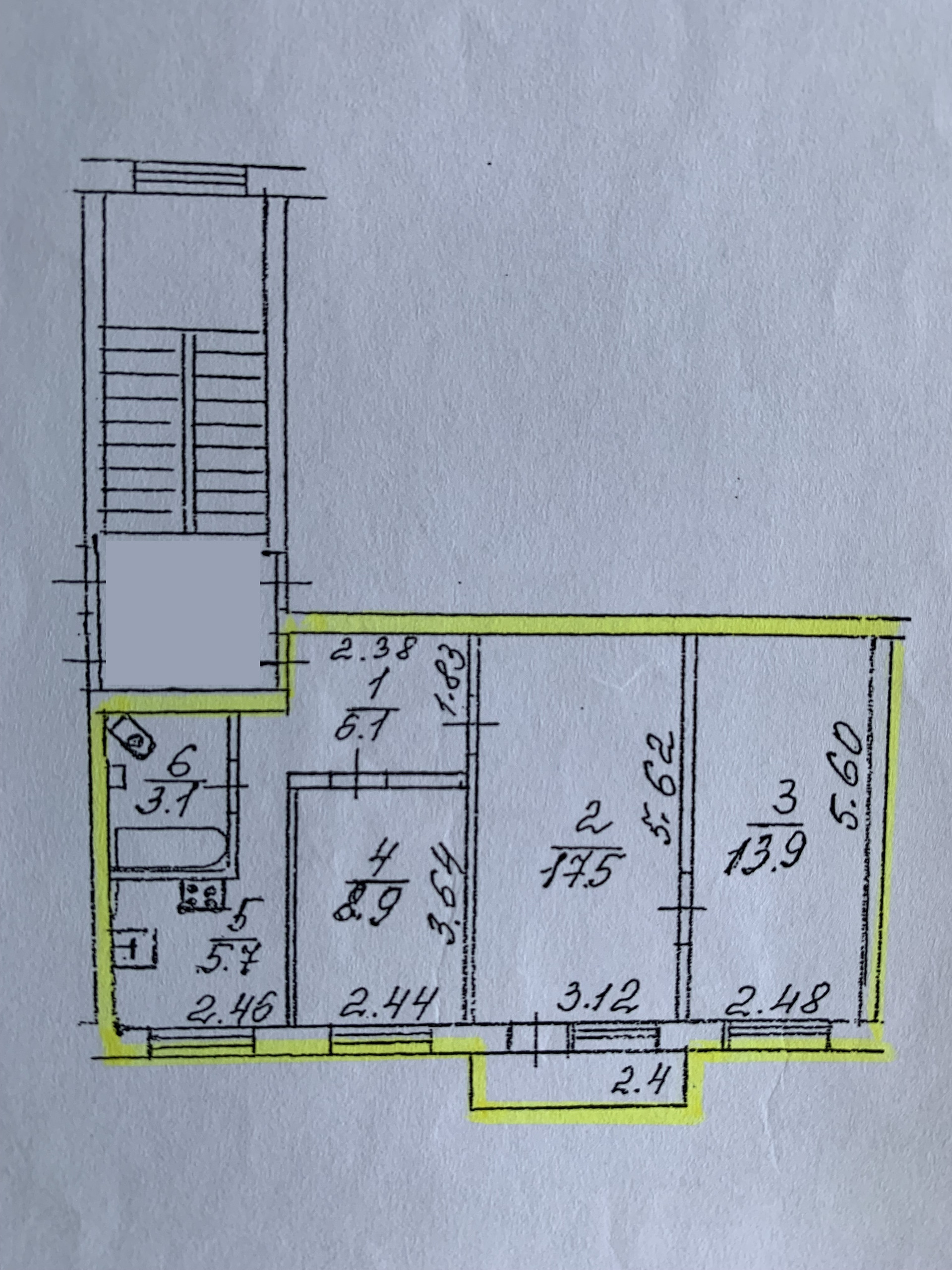 Площадь кухни 5.7 м2