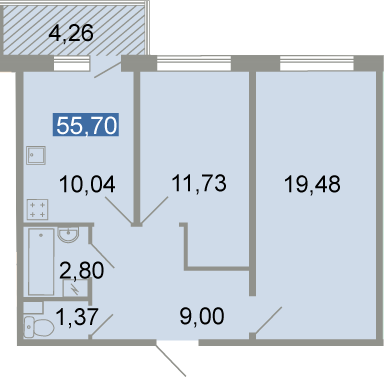 Общая площадь 55.7 м2
