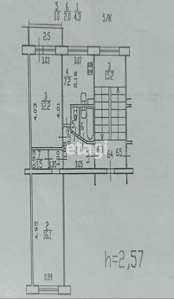 Общая площадь 44.3 м2