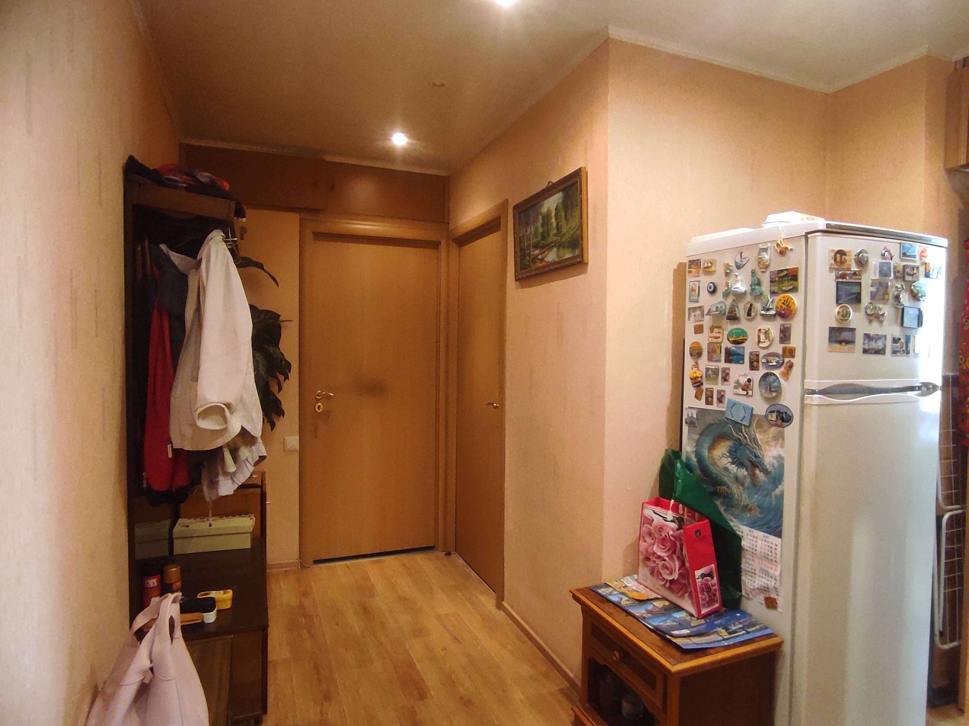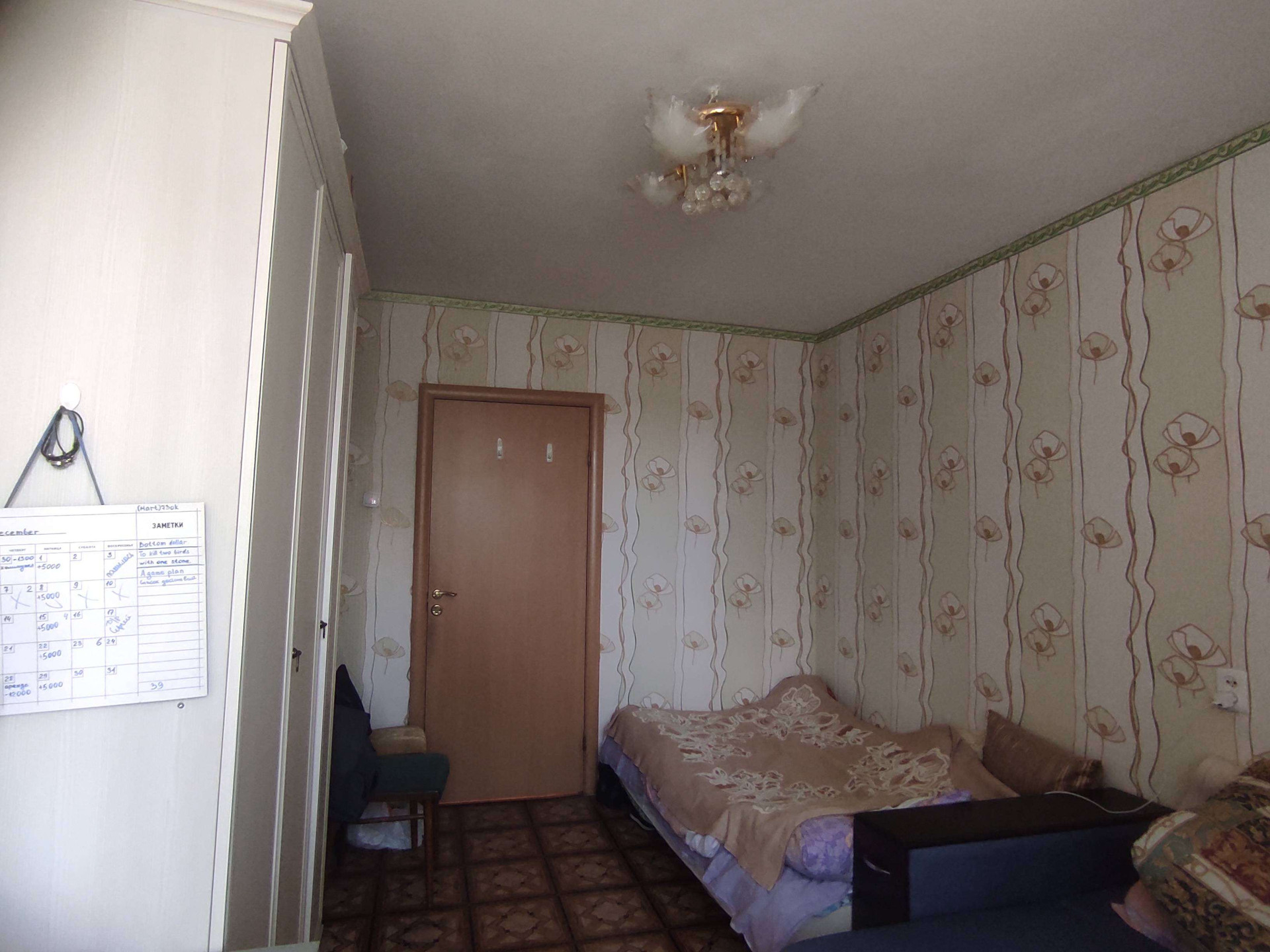 -в прихожей и гостиной оклеены обои,
