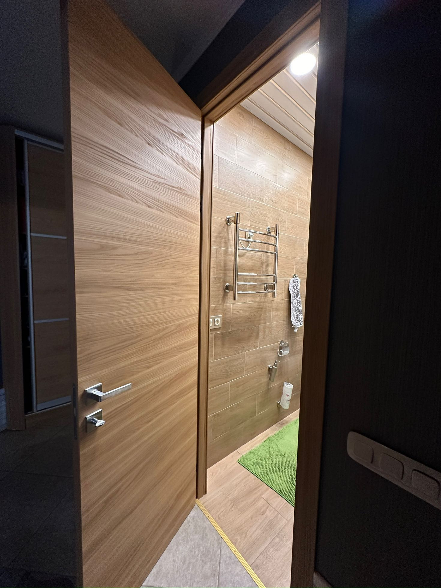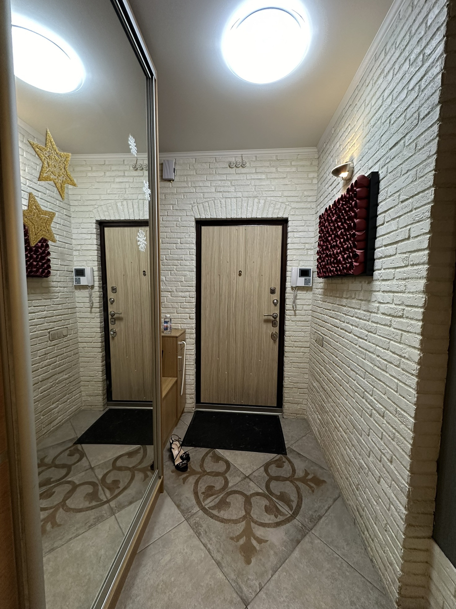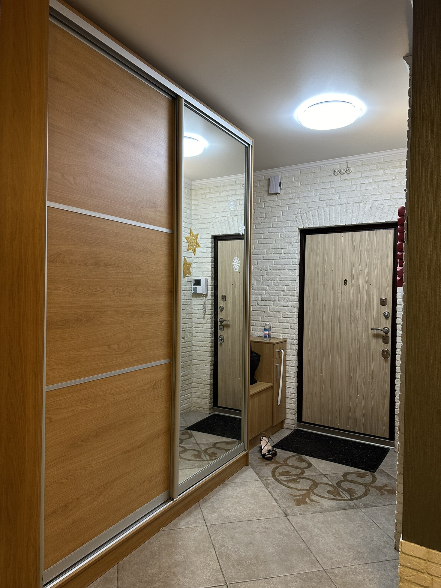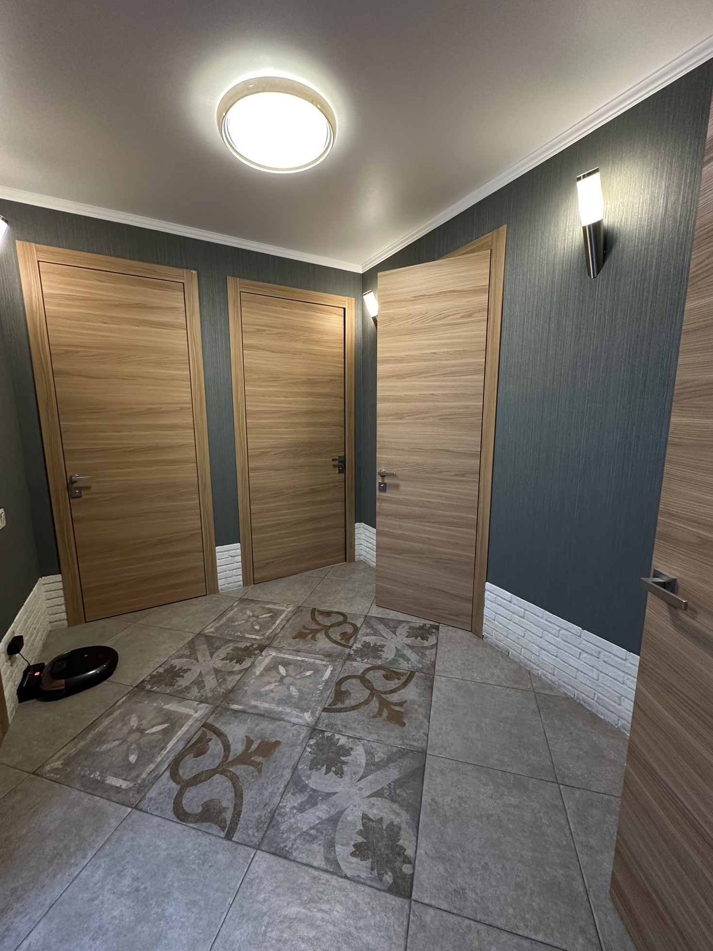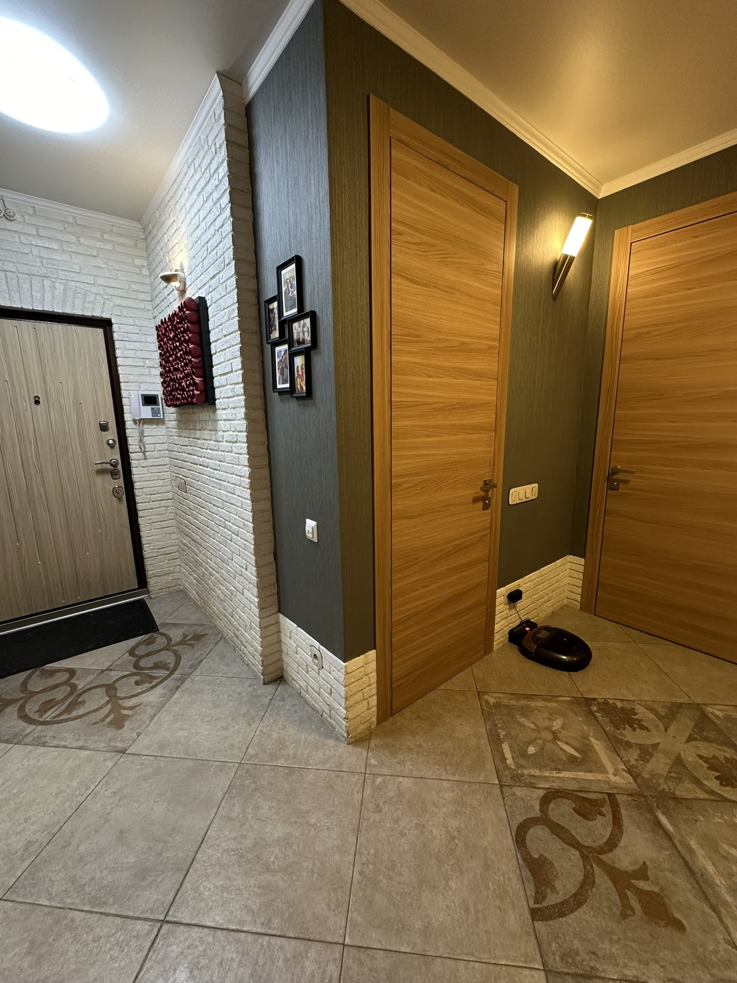 В квартире реализовано многоуровневое освещение с проходными переключателями.