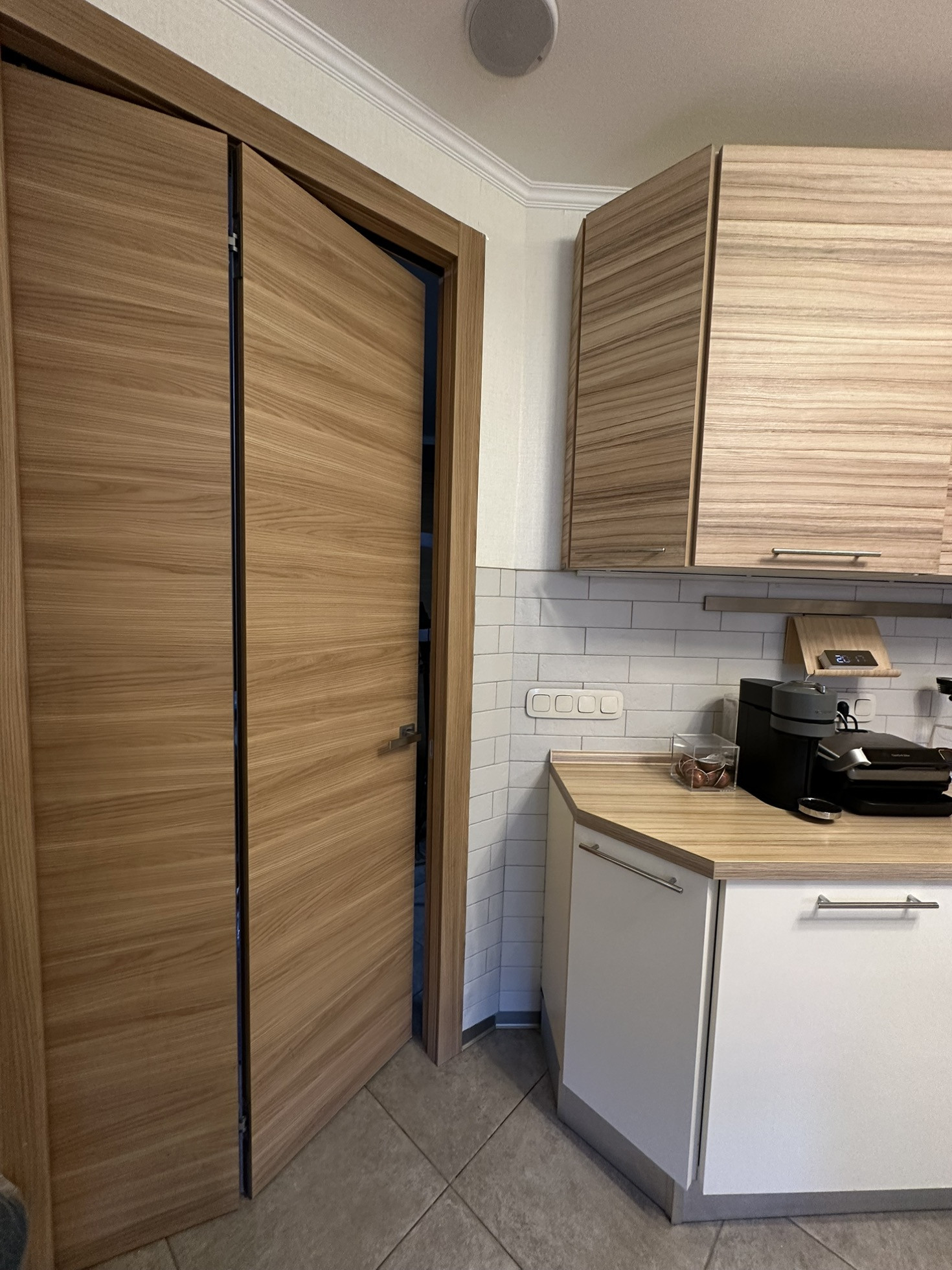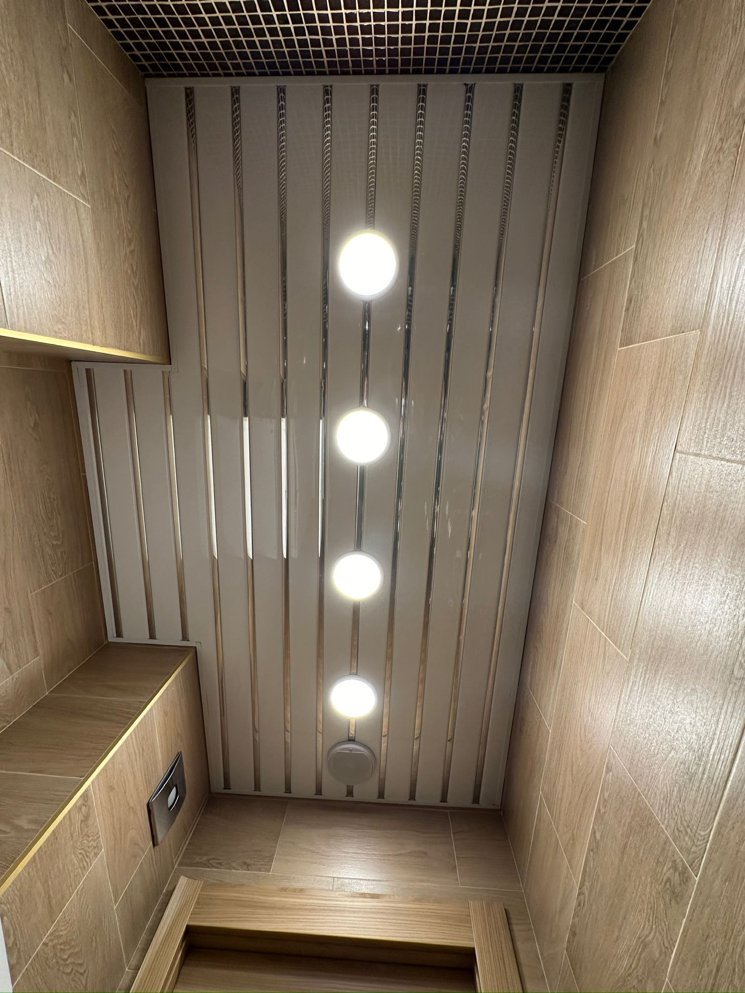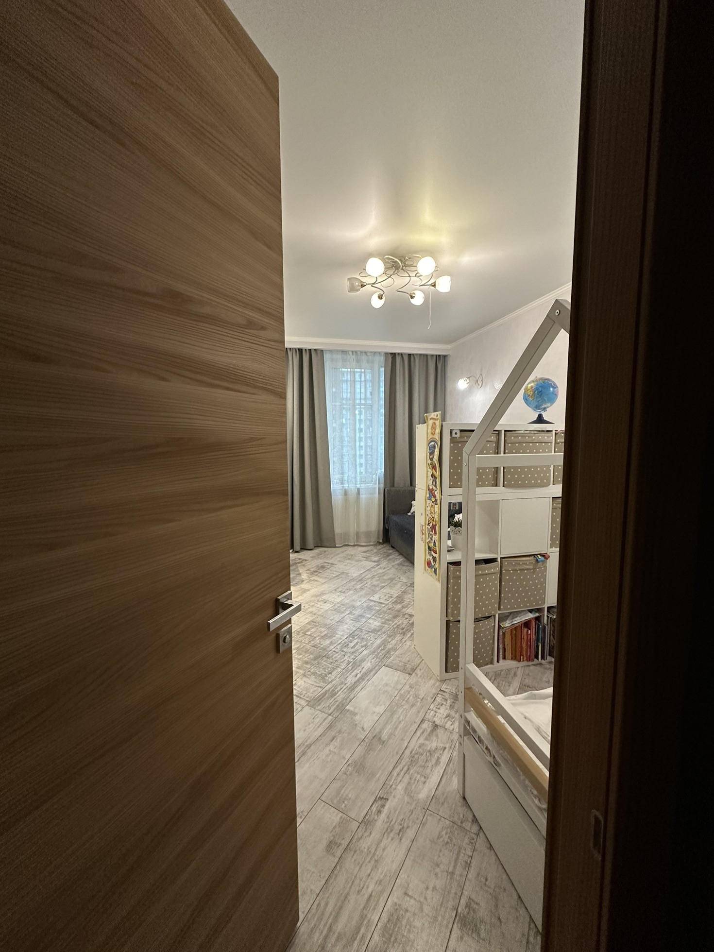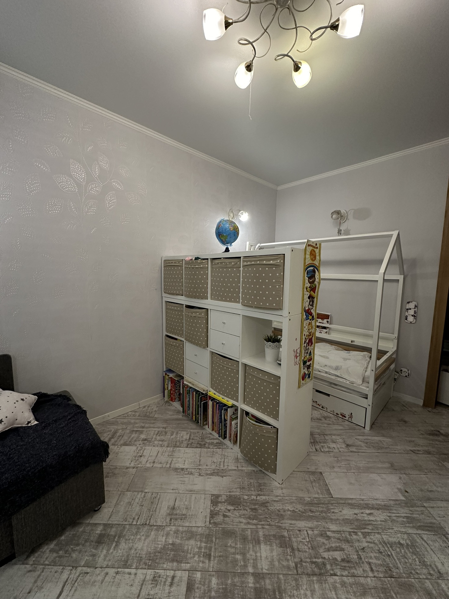 В квартире реализовано многоуровневое освещение с проходными переключателями.