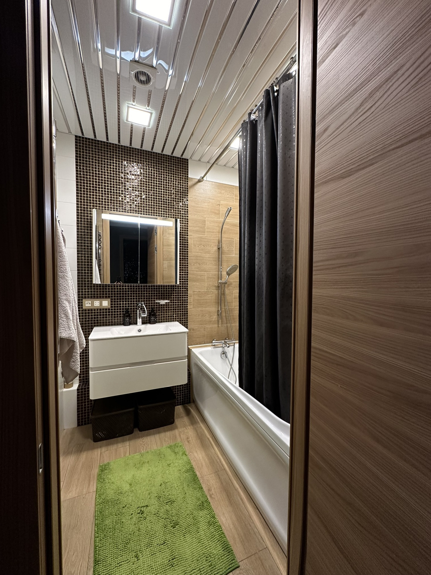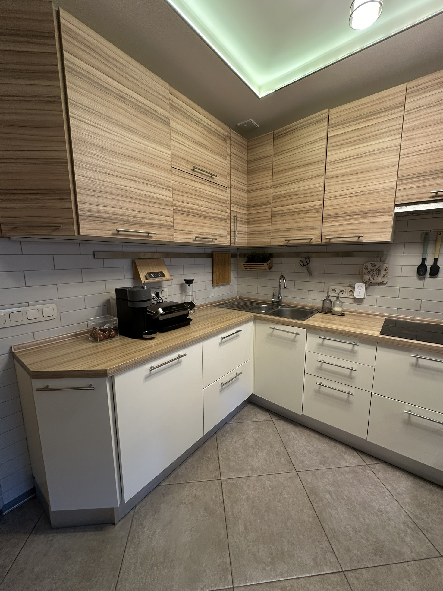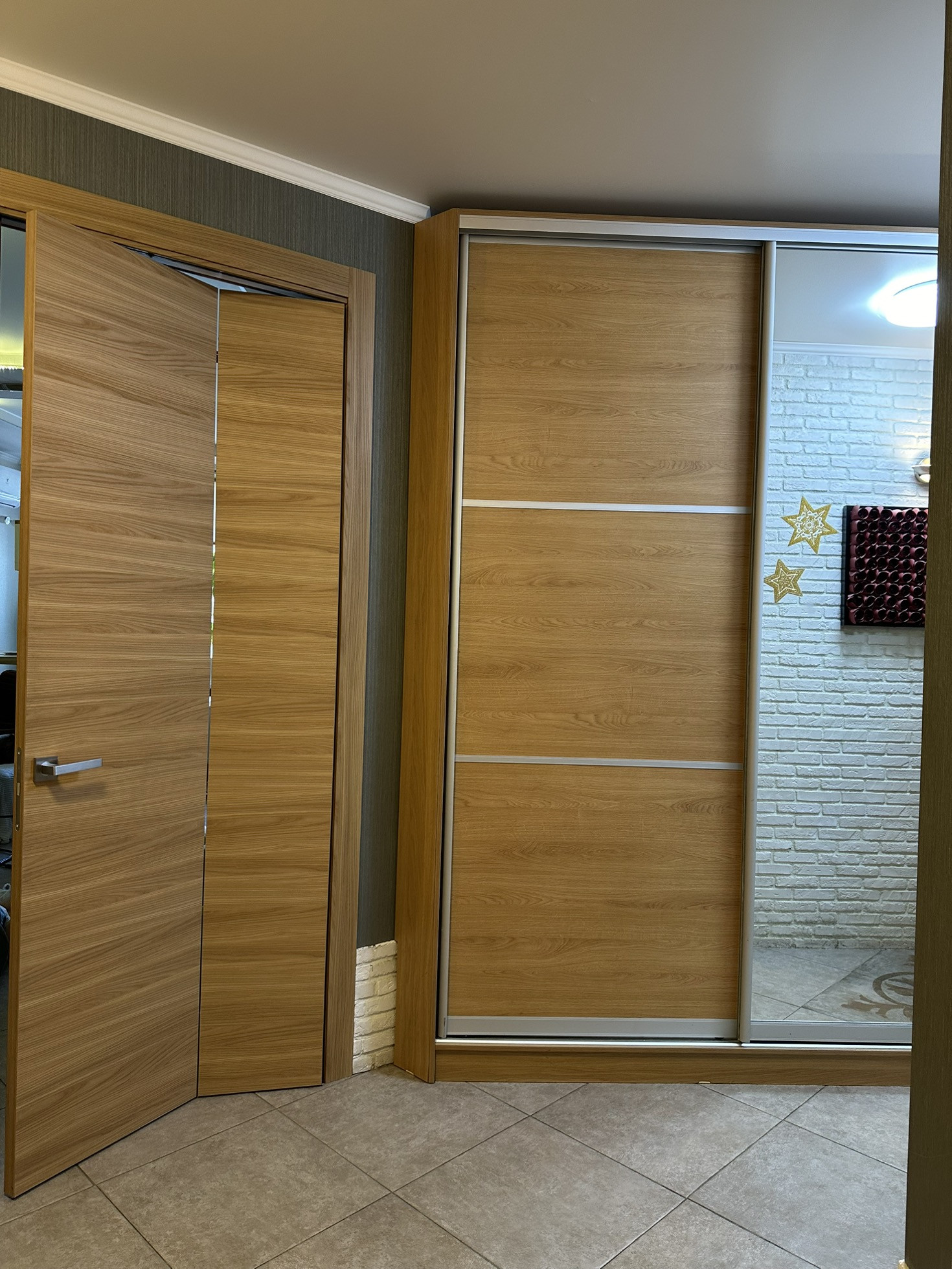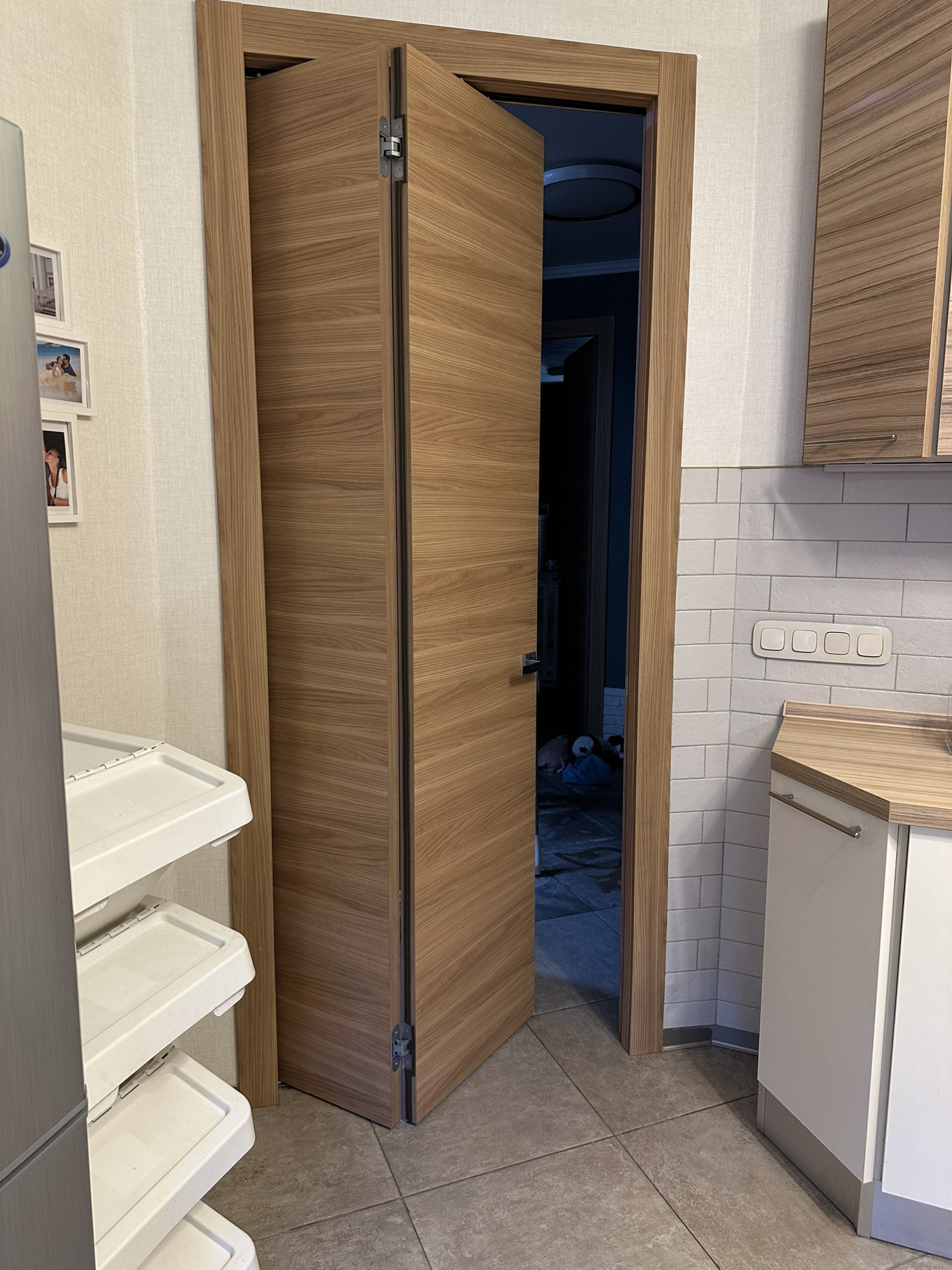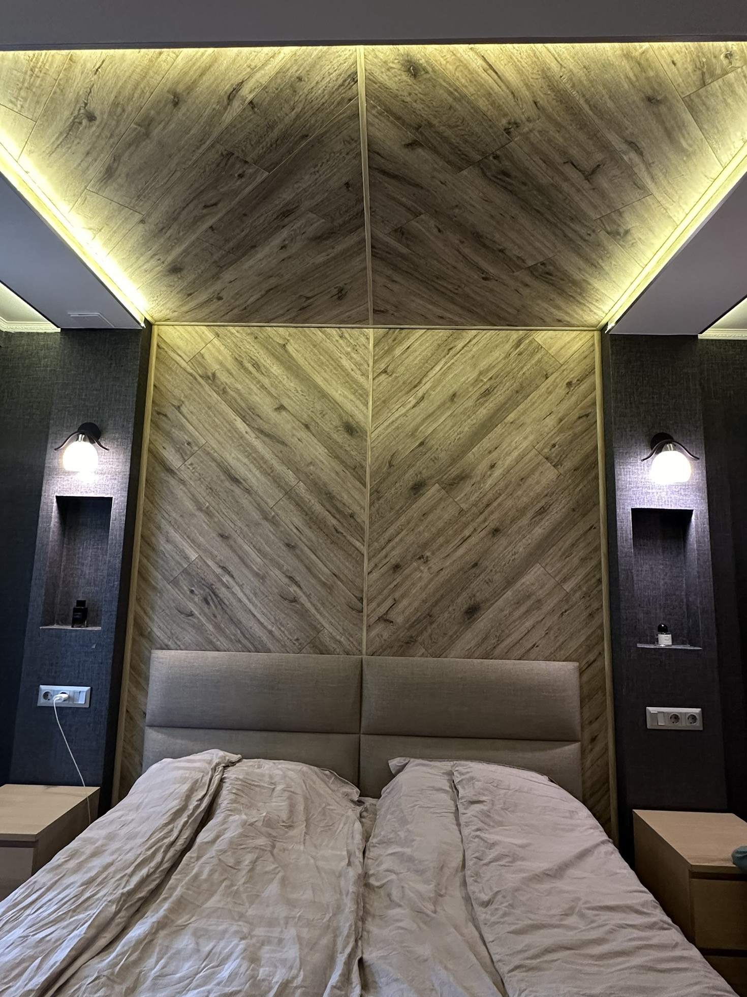 В квартире реализовано многоуровневое освещение с проходными переключателями.