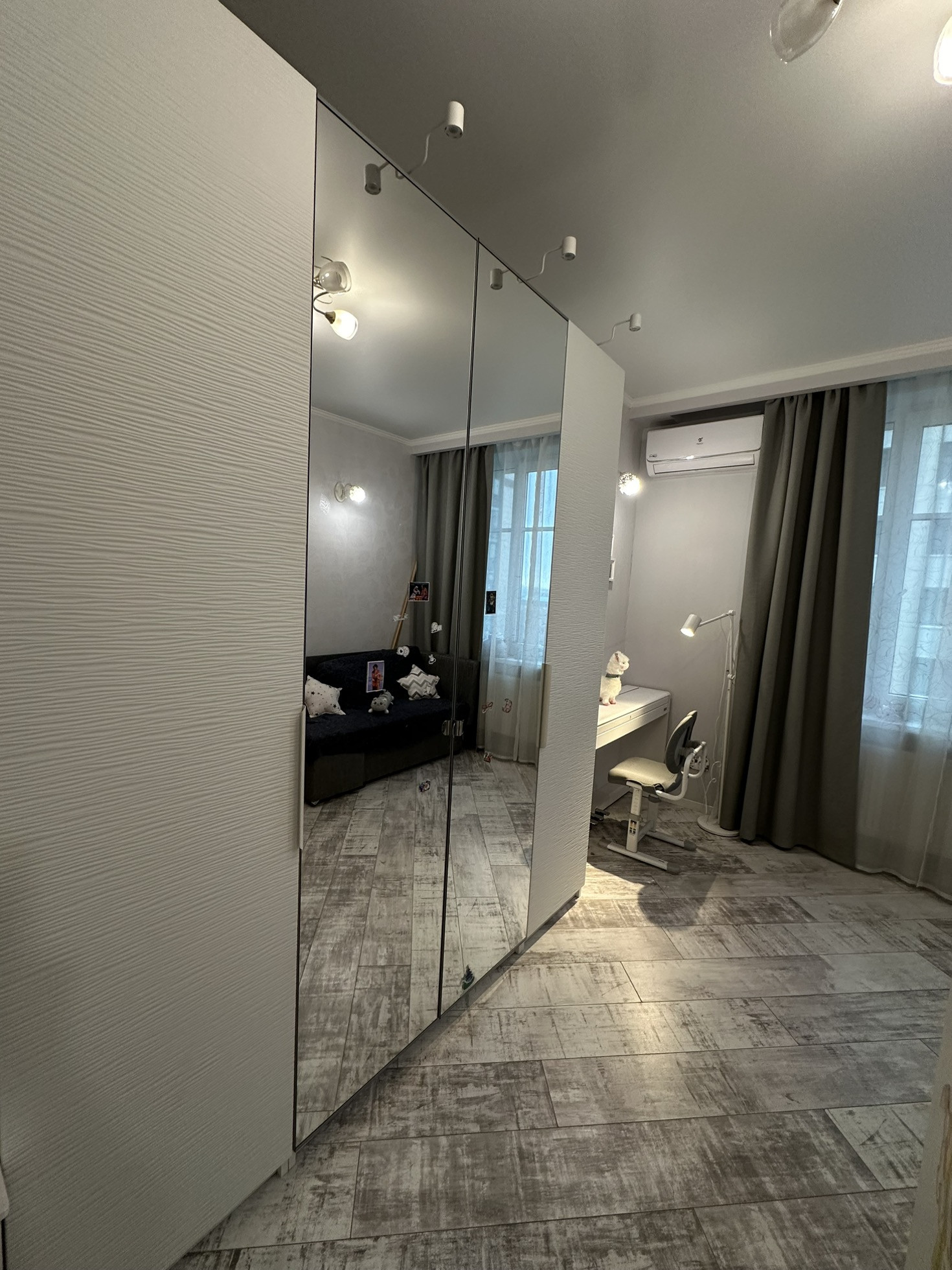 В спальне (родительской) гардеробная фирмы “Elfa”.