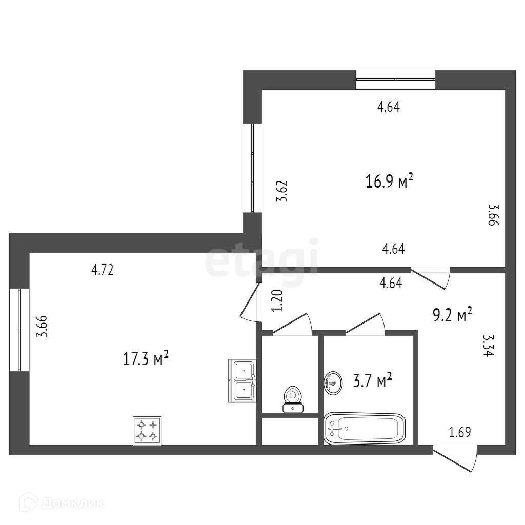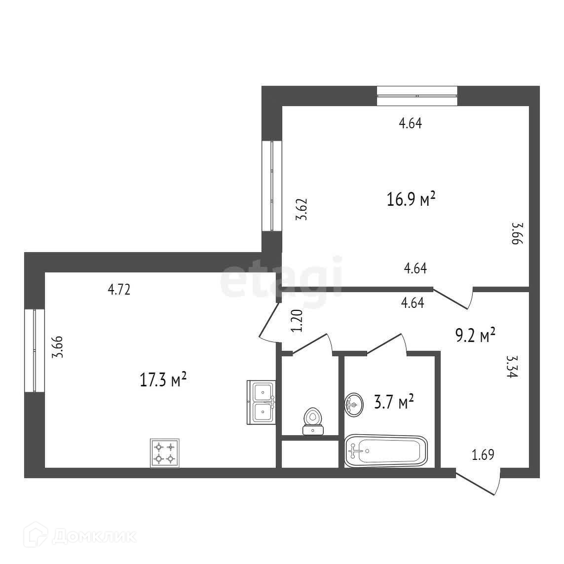 Общая площадь 48.7 м2