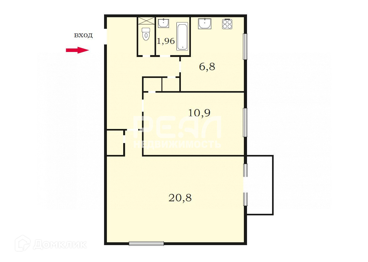 Жилая площадь 31.7 м2