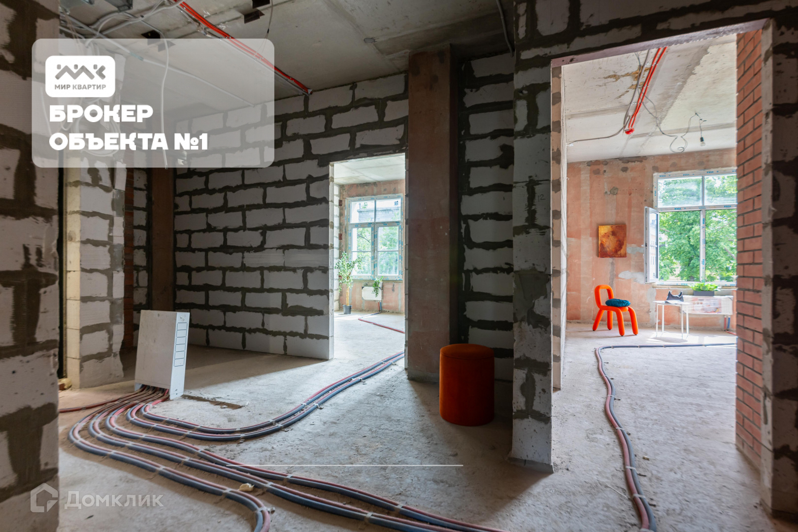 В апартаменте выполнена вся необходимая инженерная подготовка для отделочных работ и подключения системы управления климатом.
