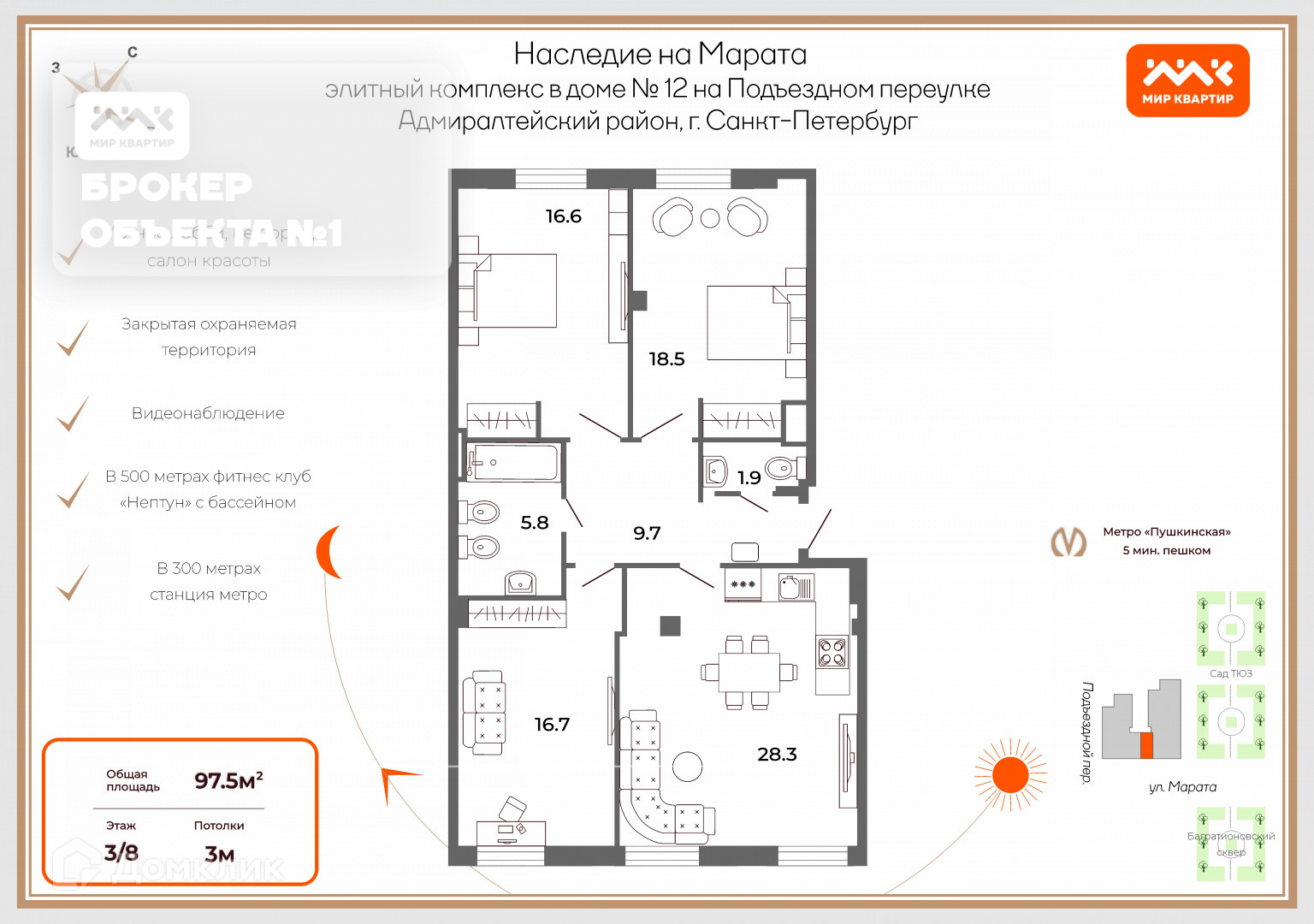 Арт. 68190462 В устье улицы Марата, ранее именуемой Преображенской, на пересечении с Подъездным переулком, в окружении скверов построен новый респектабельный комплекс апартаментов для жизни - «Наследие на Марата».