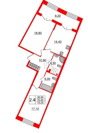 Общая площадь 70.4 м2