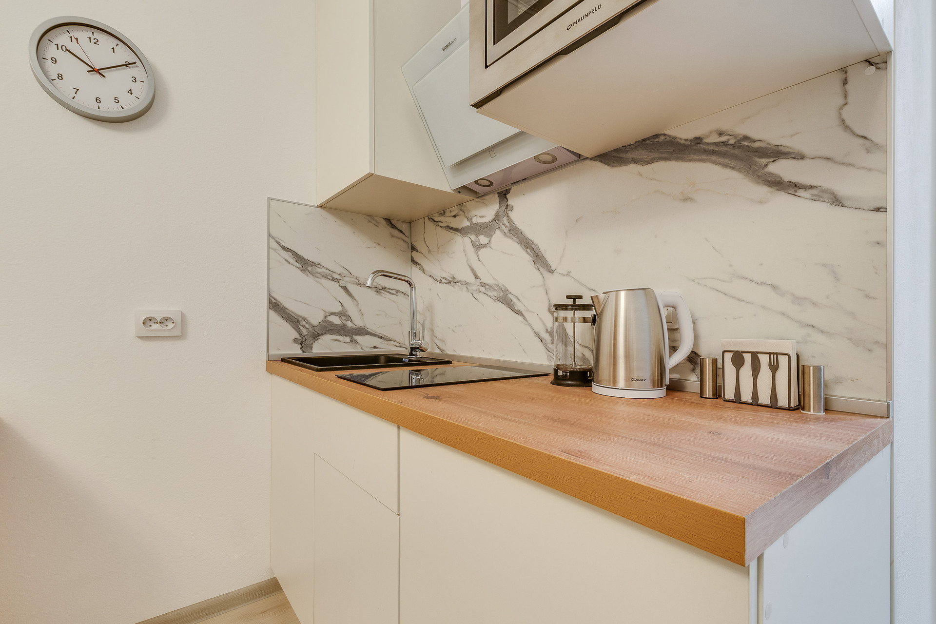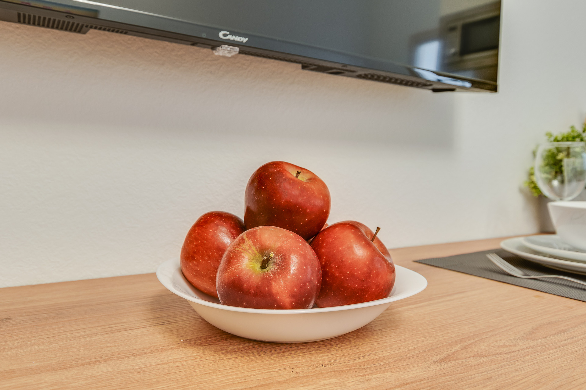 - в стоимость входит вся мебель и техника представленная на фото: двуспальная кровать, уютный диван, кухонный гарнитур со встроенной бытовой техникой – холодильник, варочная поверхность, СВЧ, вытяжка, плазменный TV Candy, уютный стол со стульями, в коридоре зеркальный вместительный шкаф-купе.