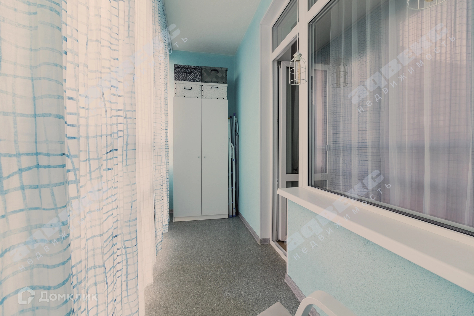 Лоджия оборудована шкафом для хранения и креслом для медитаций на закате.