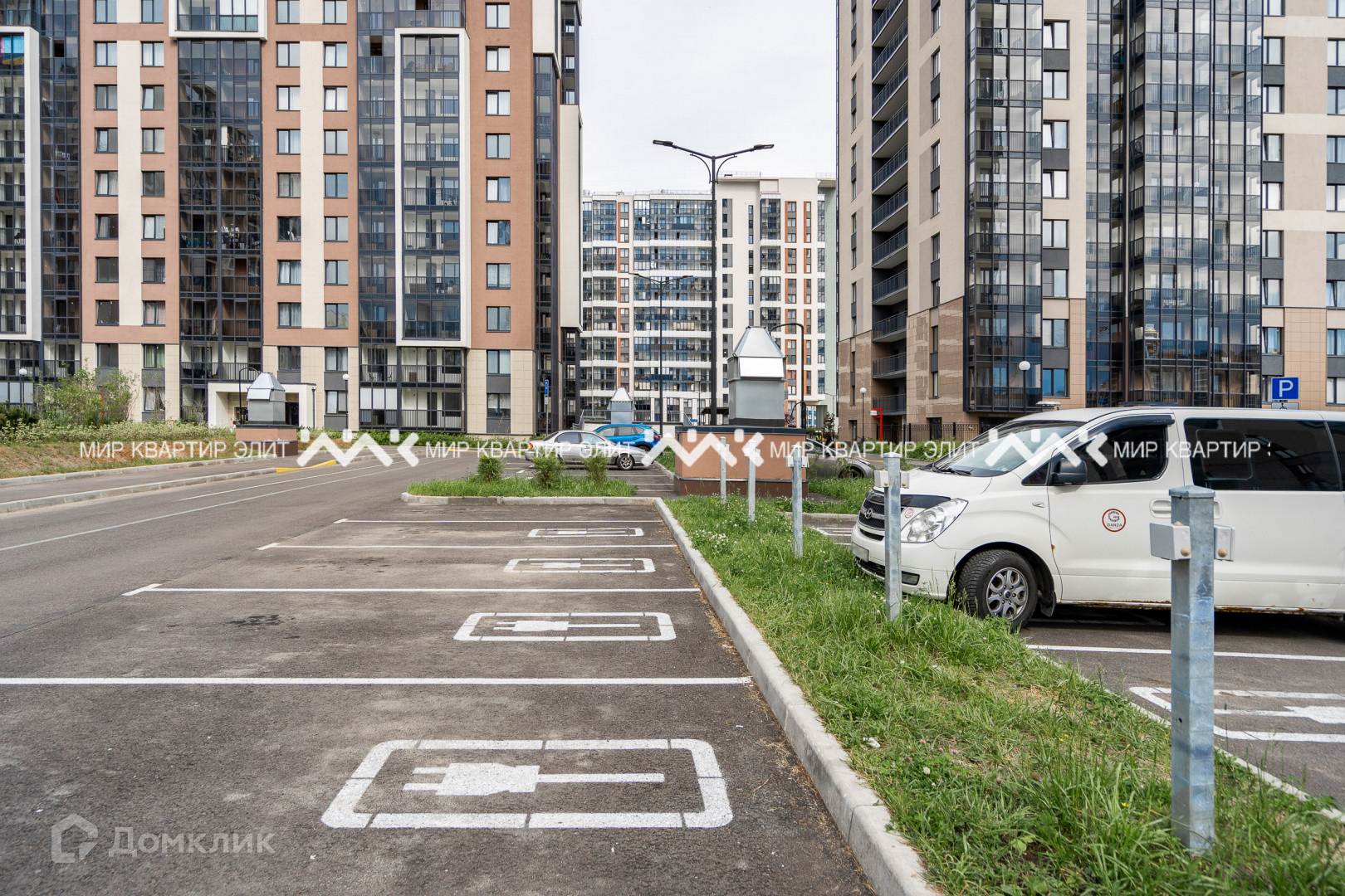 Большой подземный паркинг,  во дворе дома и по его периметру обилие парковочных мест, многие из которых оборудованы электрическими зарядками. Территория гармонично смотрится благодаря ландшафтному дизайну, в который умело вкраплены зоны отдыха для жильцов и гостей.