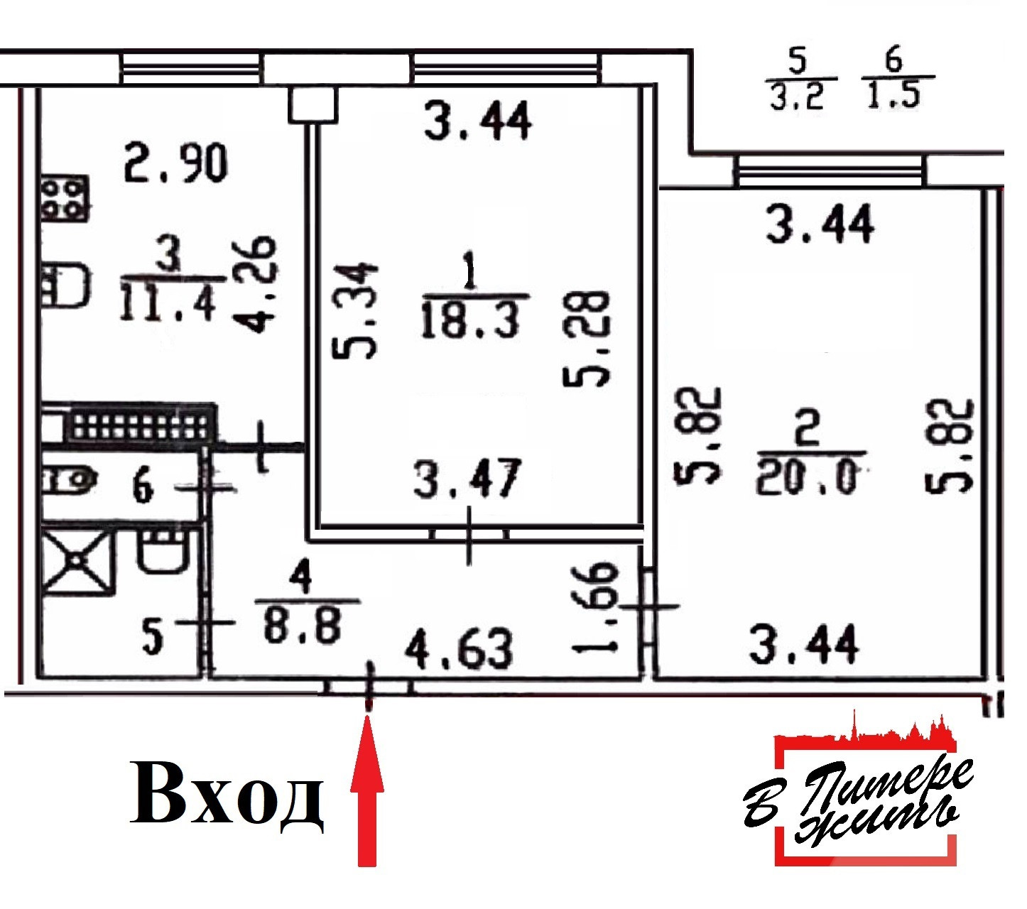 Общая площадь 63.2 м2