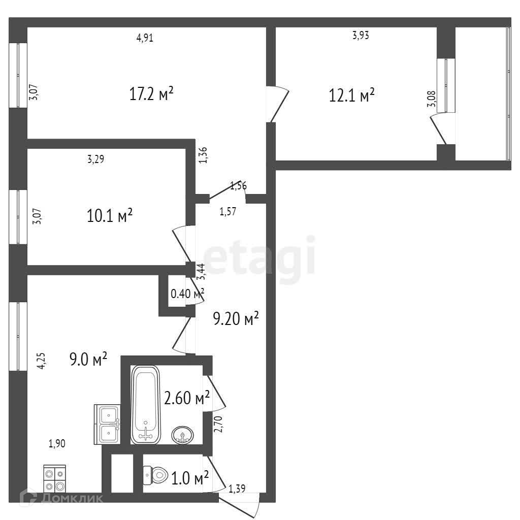 3-комнатная квартира, 62.3 м2, этаж 7 / 9, на продажу в Санкт-Петербурге, Дунайский проспект, 48к1