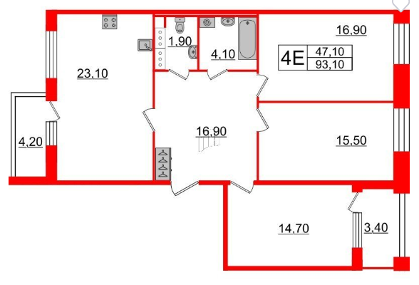 Общая площадь 93.1 м2