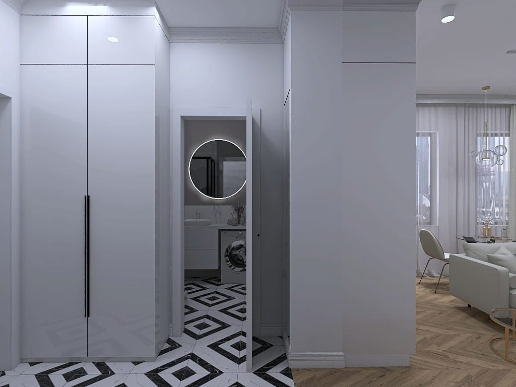 Просторная прихожая с нишей для верхней одежды.