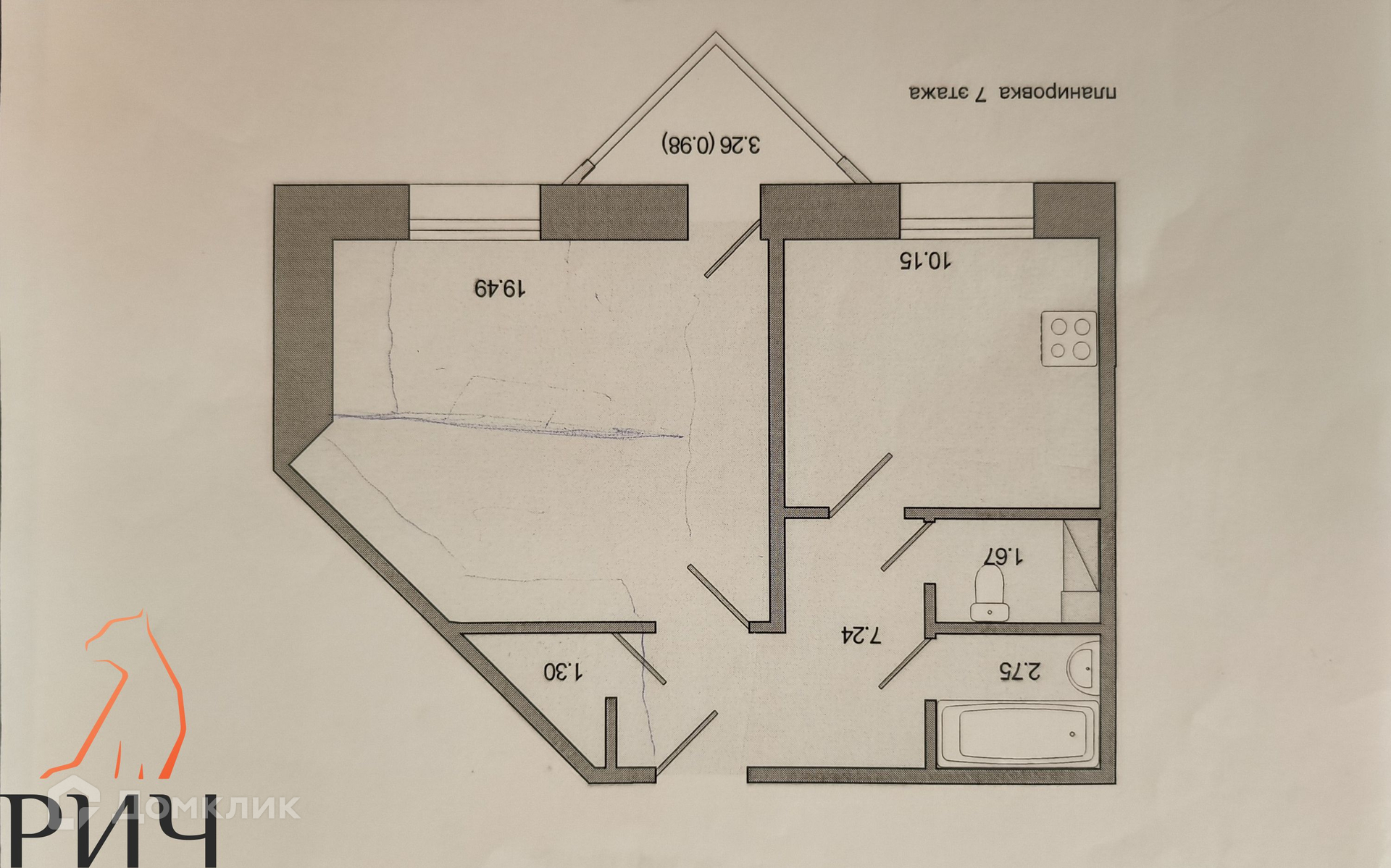 Жилая площадь 19.4 м2