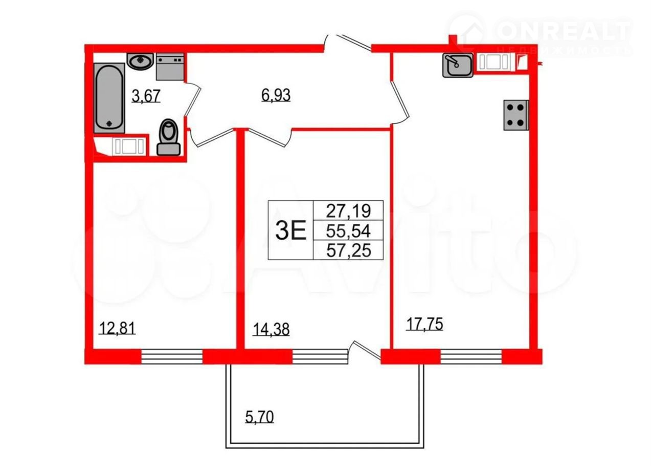 Общая площадь 56 м2