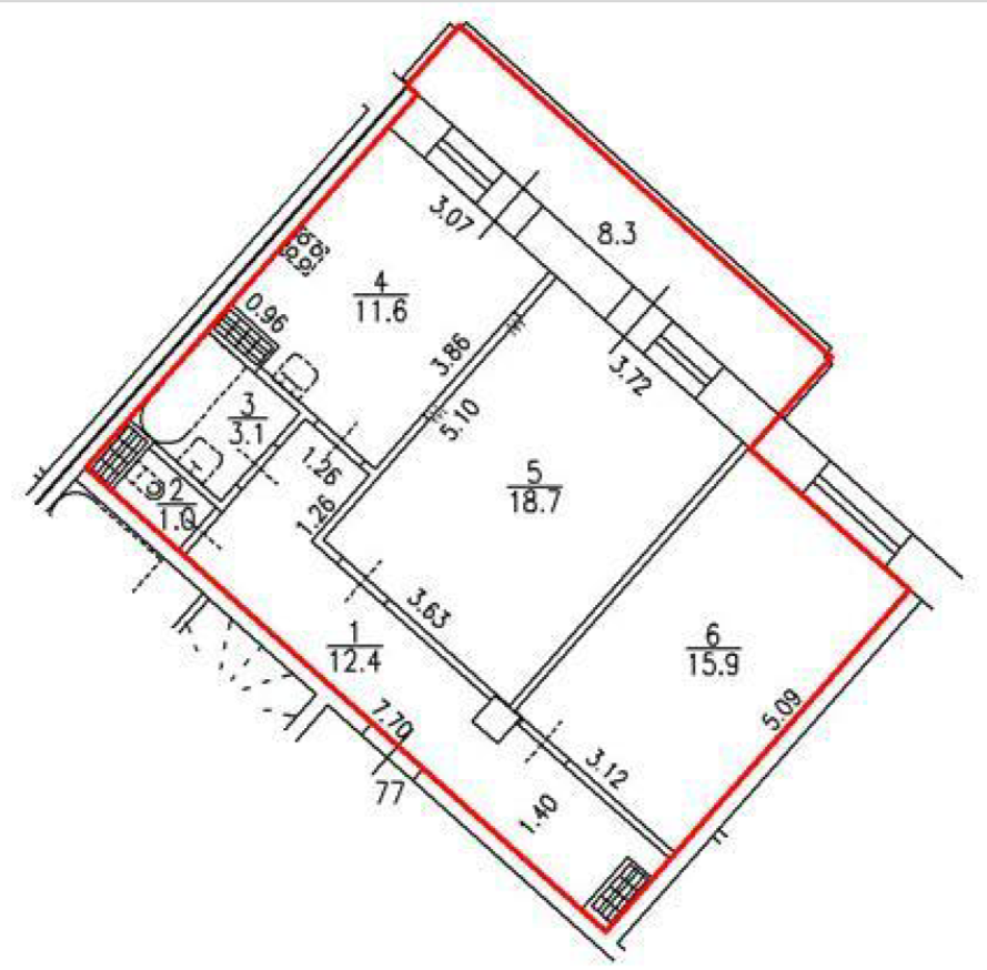 Общая площадь 62.7 м2