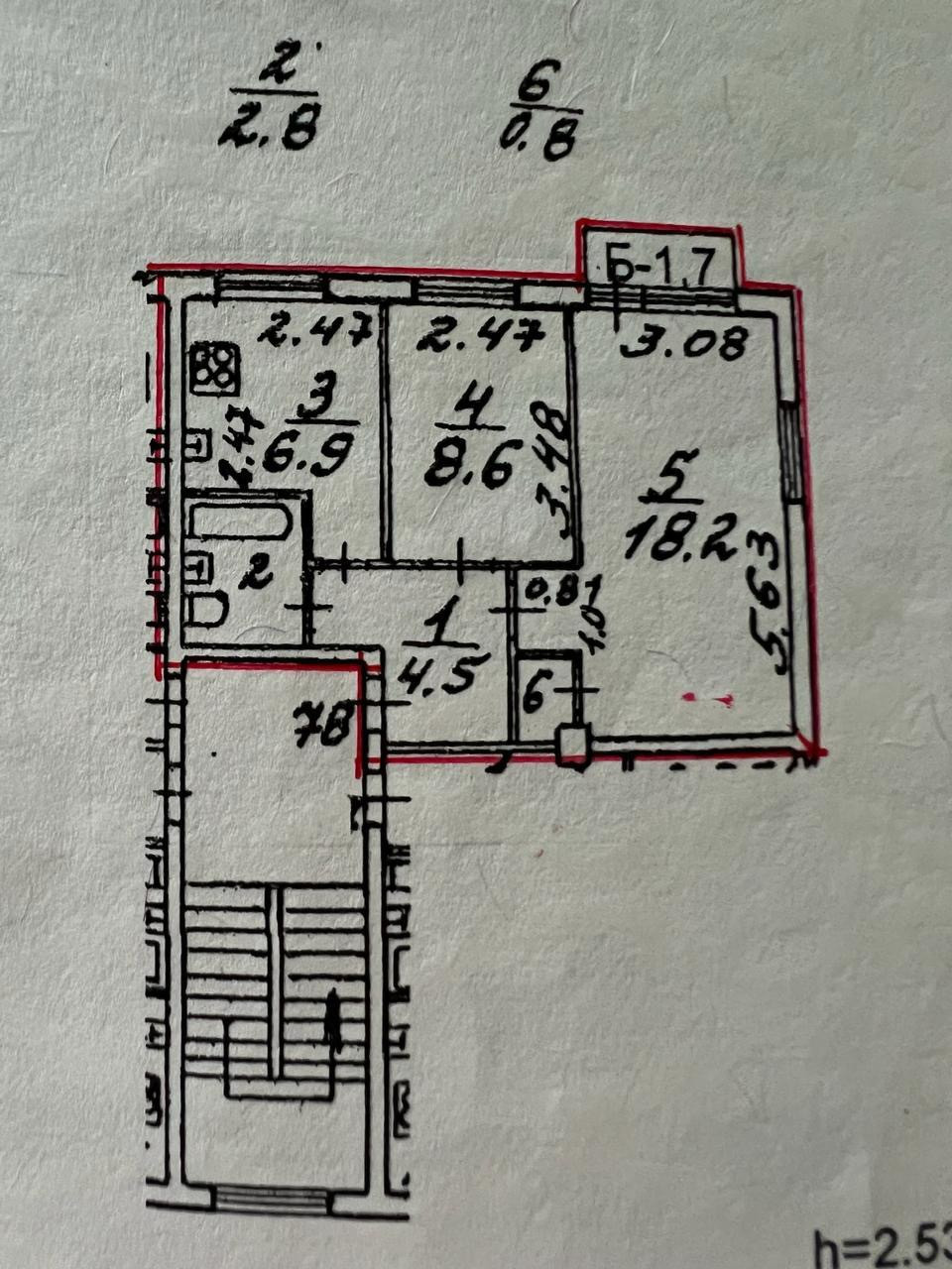 Высота потолков 2.54 м