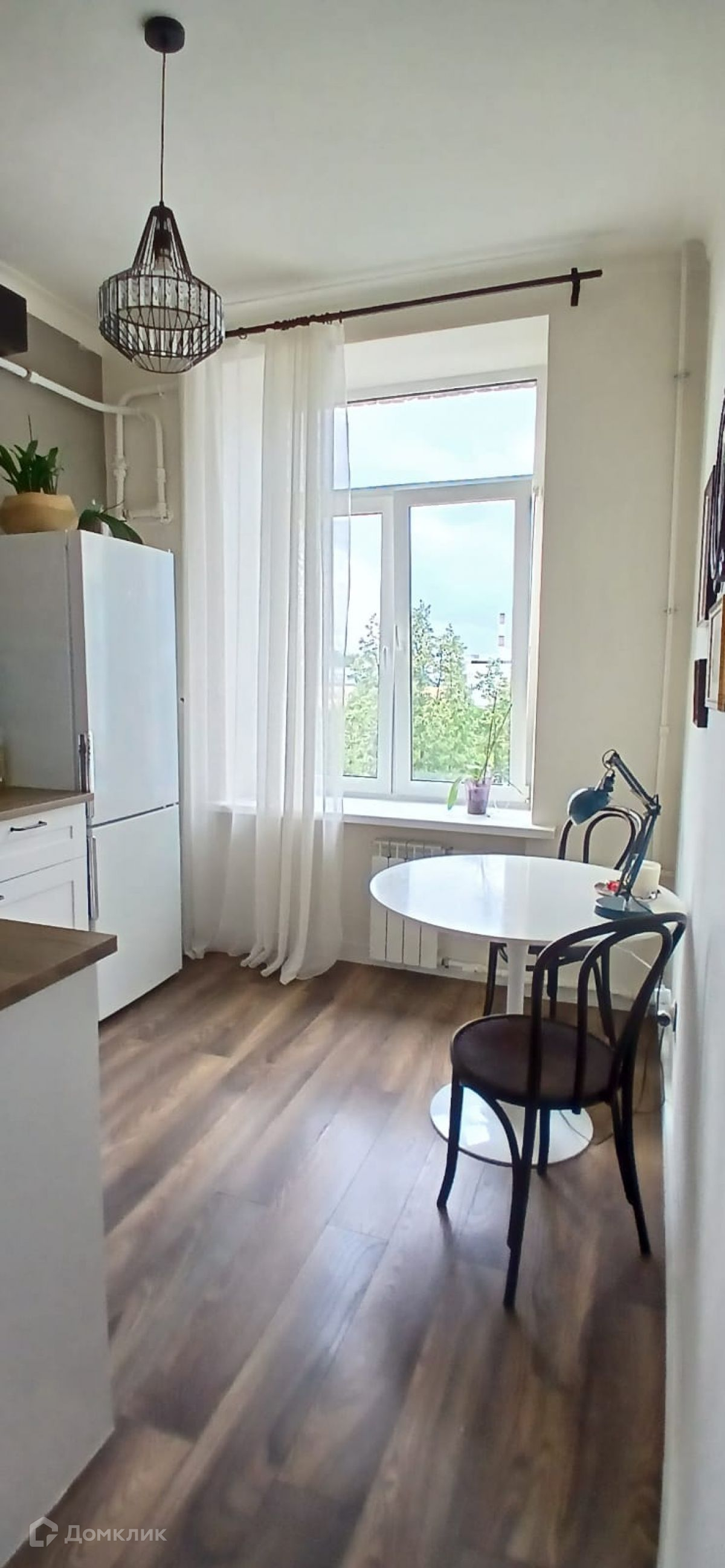 Отличный вид из больших окон на крыши домов и деревья.