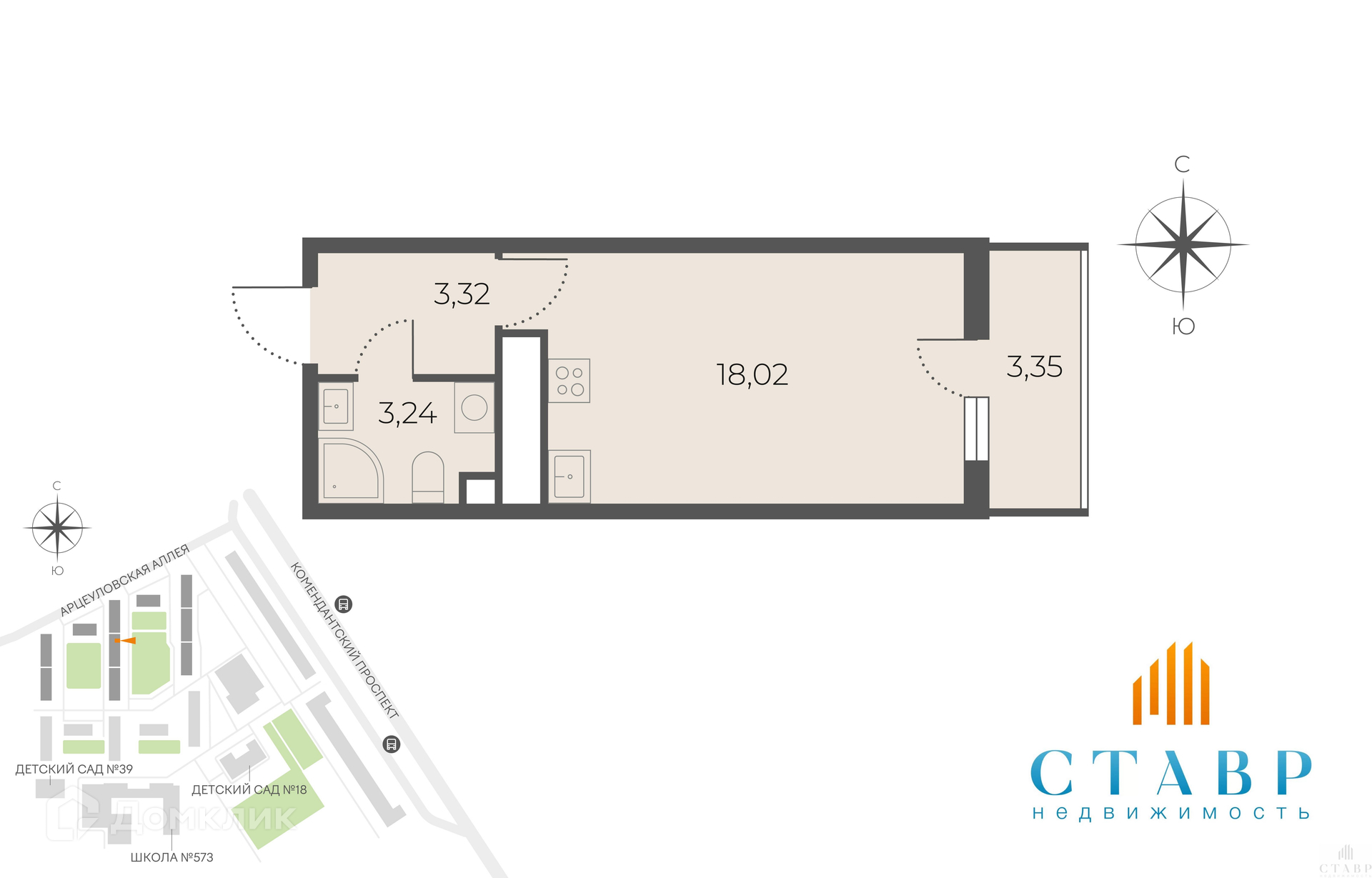 К продаже предлагается кв. студия в ЖК «Чистое небо» на Арцеуловской аллее 21.