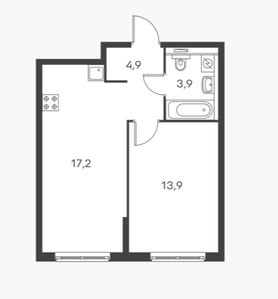 Общая площадь 39.9 м2