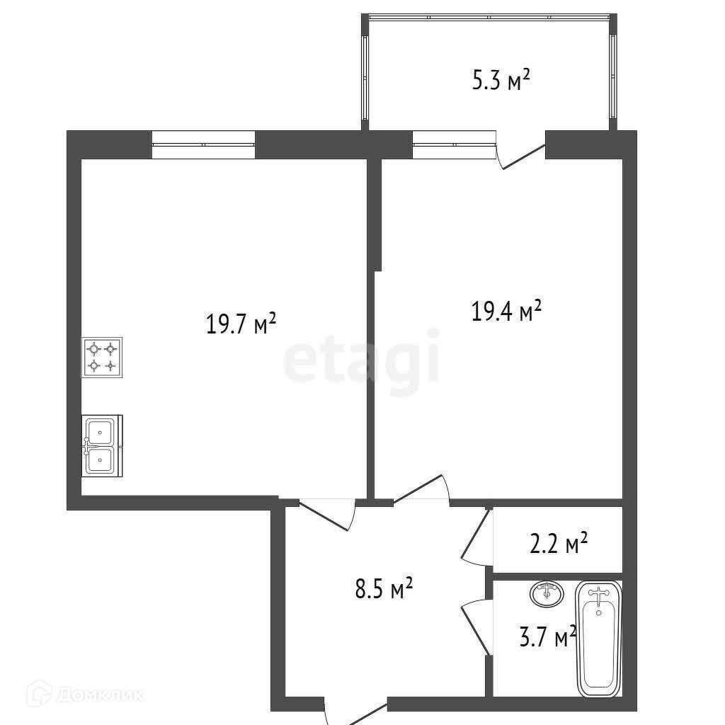Общая площадь 53.5 м2