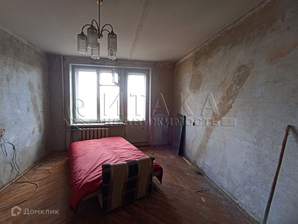 В квартире предполагалось сделать ремонт, и уже на 70% проведен демонтаж: сняты обои, везде, кроме большой комнаты; сбит кафель.