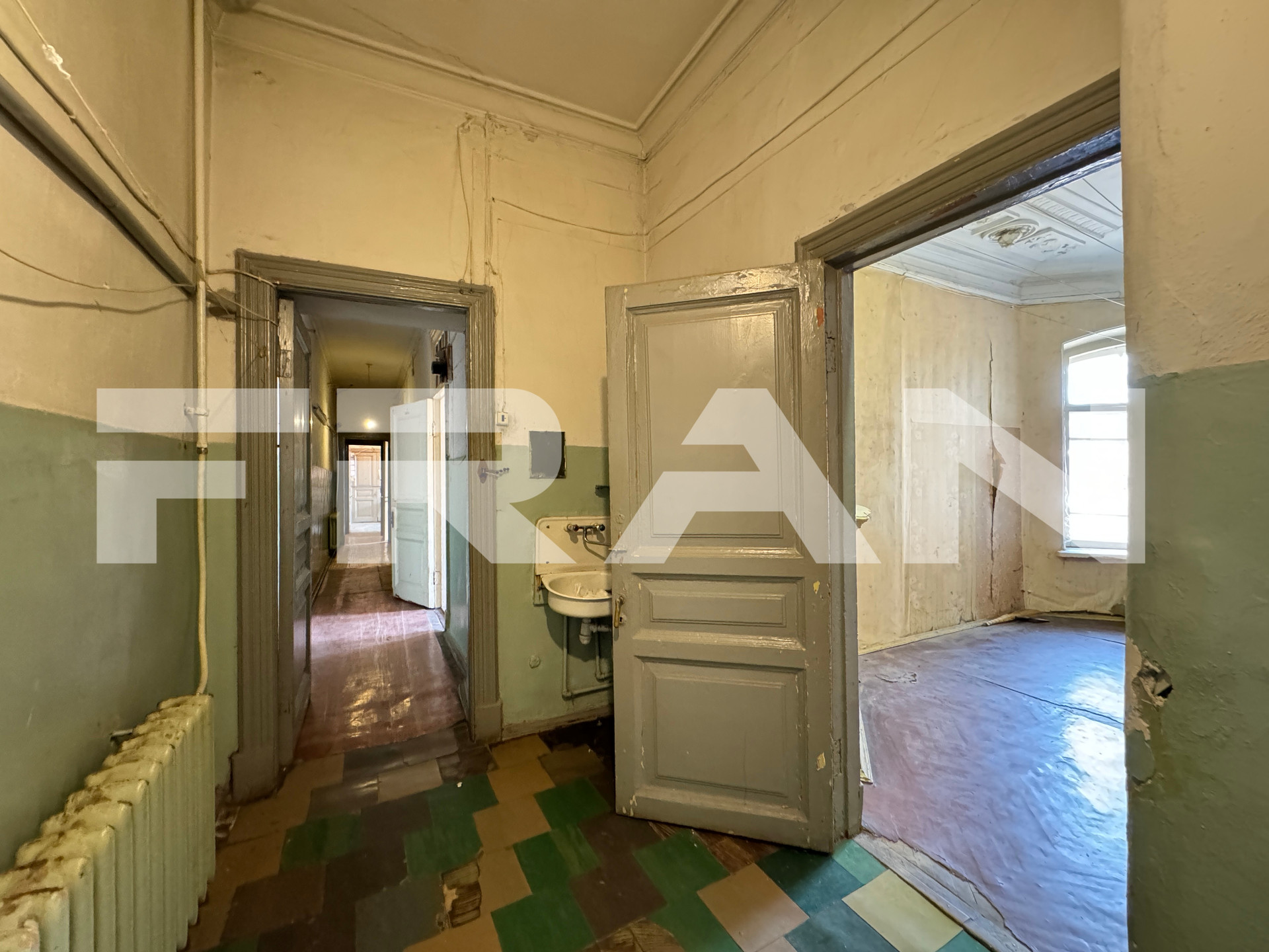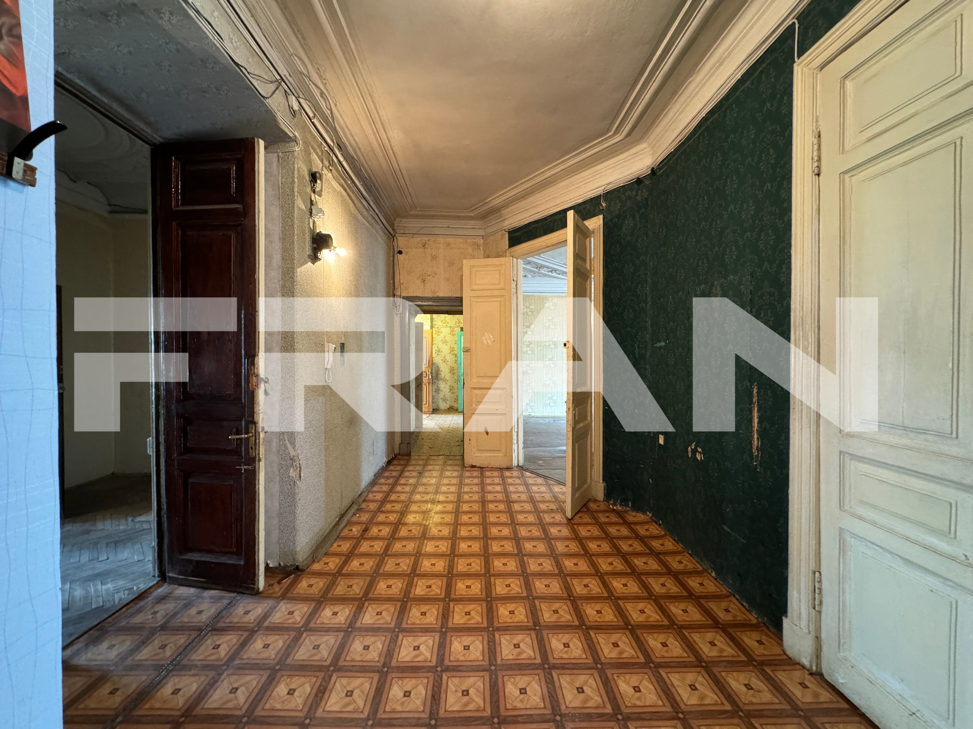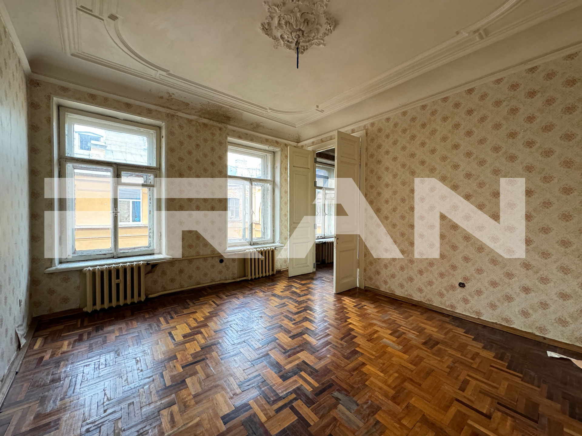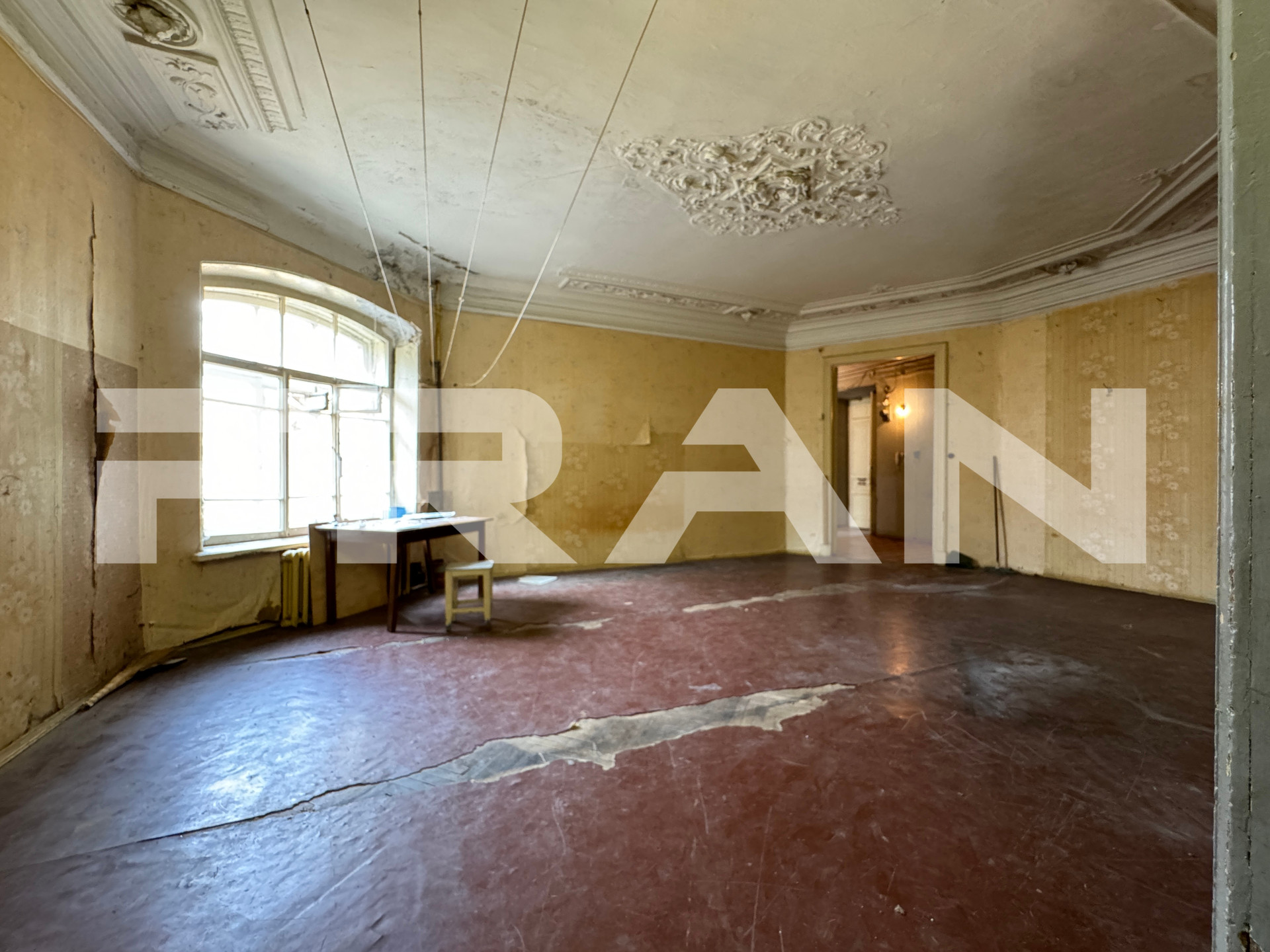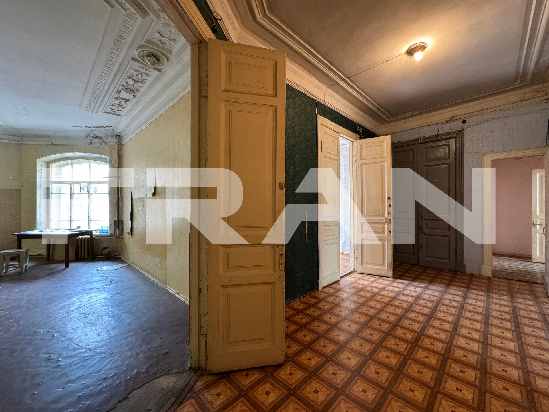 В квартире – 9 больших комнат 2 раздельных санузла. Высота потолков – 3.53 метра. Обустройство – на свой вкус, с возможностью разделения на две квартиры.