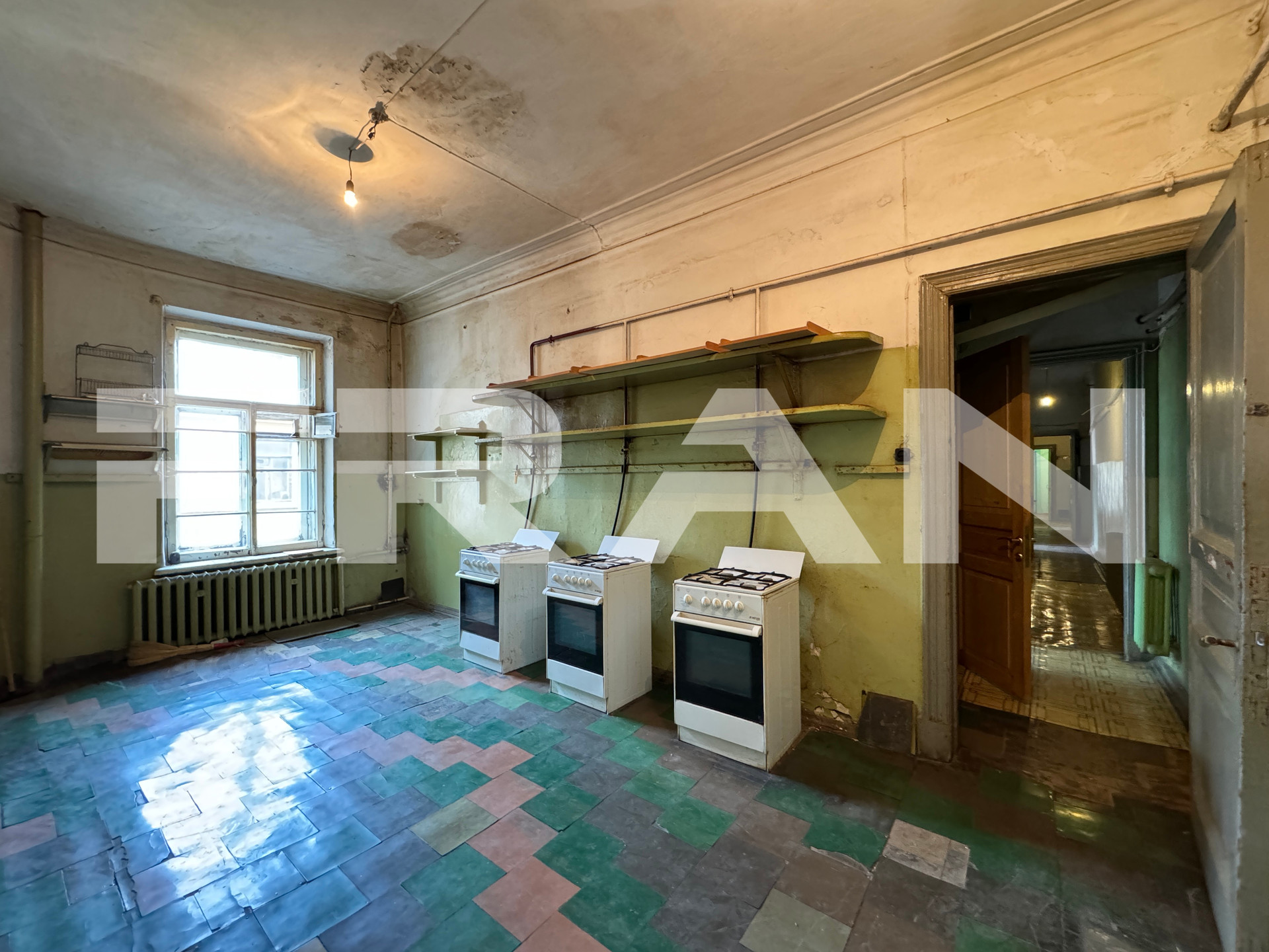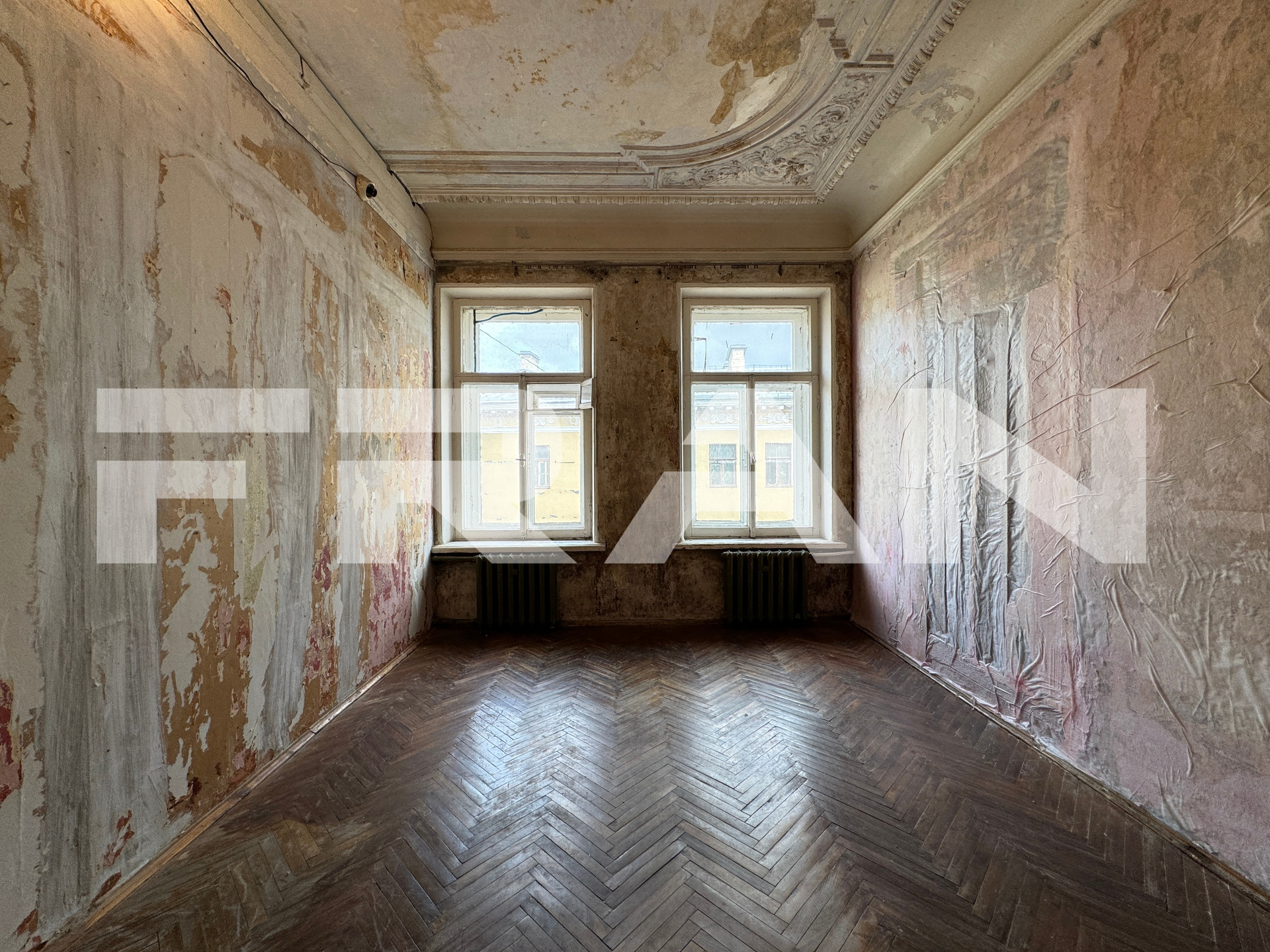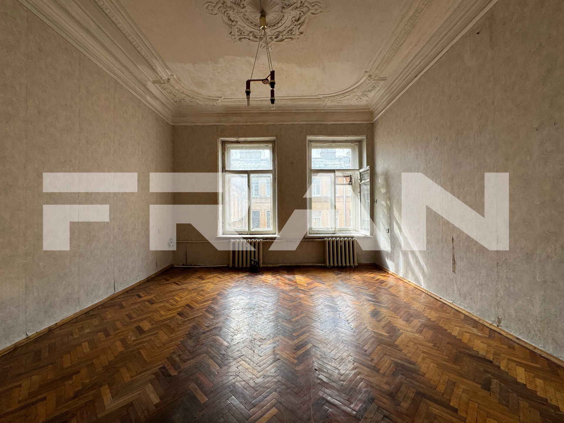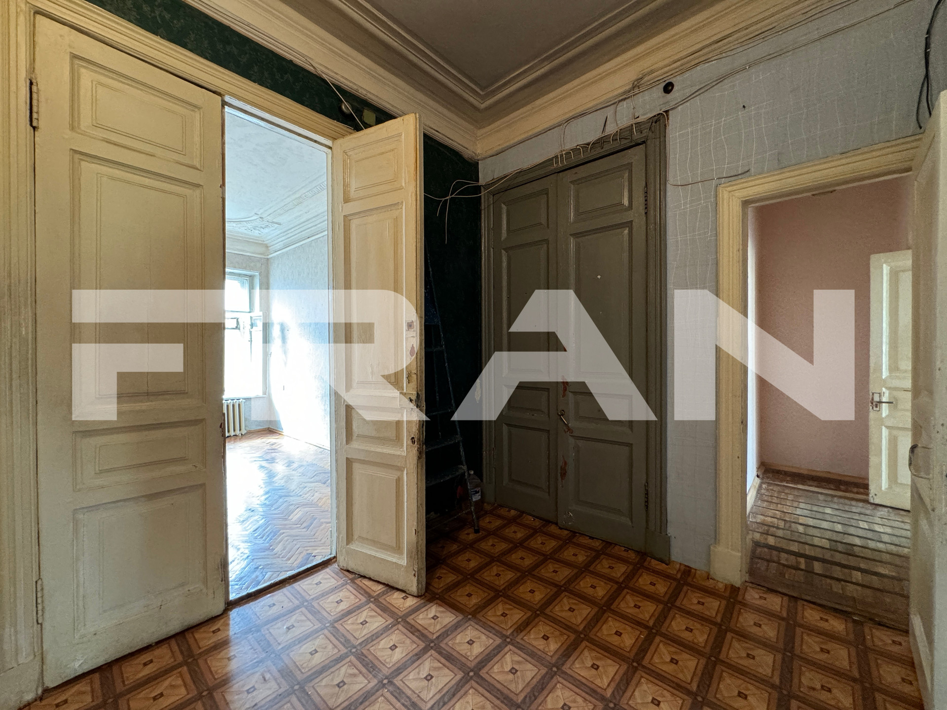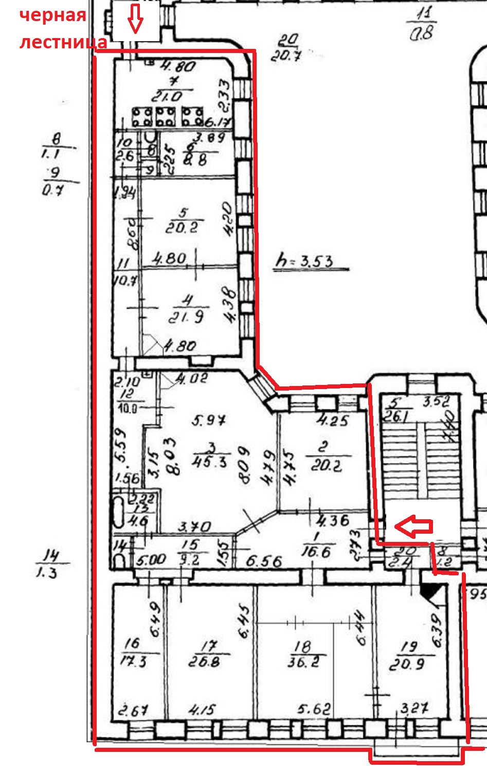 В квартире – 9 больших комнат 2 раздельных санузла. Высота потолков – 3.53 метра. Обустройство – на свой вкус, с возможностью разделения на две квартиры.