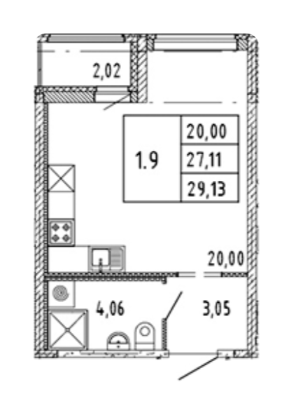 Общая площадь 29.13 м2