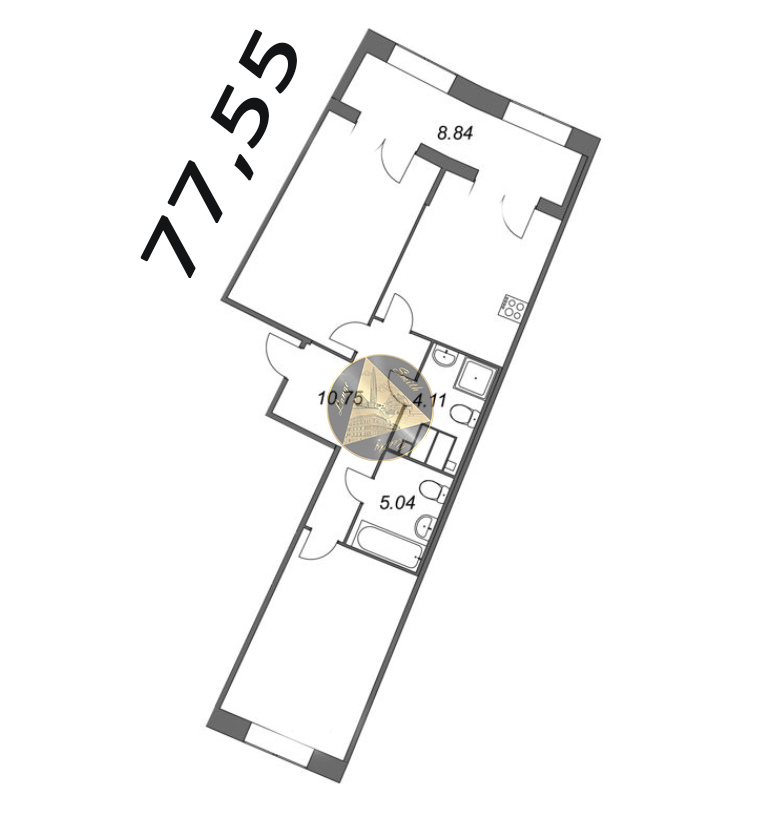 - Общая площадь квартиры 77,55  м2