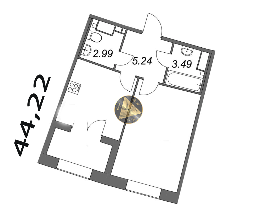 - Общая площадь квартиры 44,22 м2
