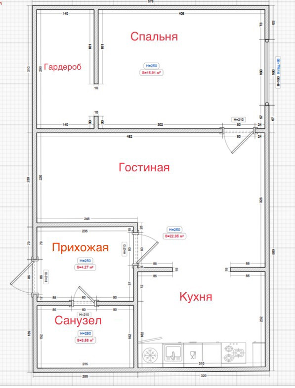 Высота потолков 2.5 м