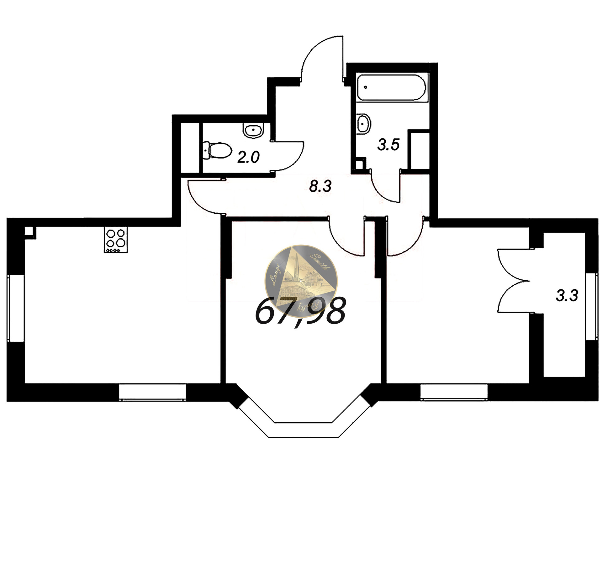 - Общая площадь квартиры 67,98 м2