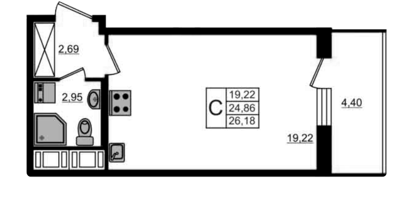 Общая площадь 26.18 м2