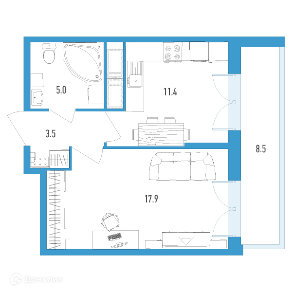 Жилая площадь 18.03 м2